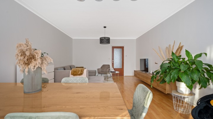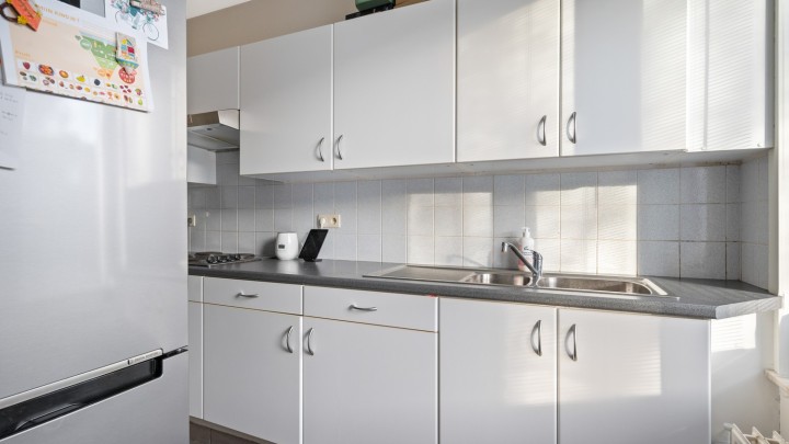 Het appartement is gelegen op de eerste verdieping van een kleinschalig gebouw, zonder lift.