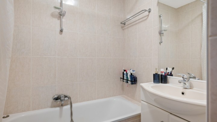 Het appartement beschikt nog over een badkamer en een apart toilet.
