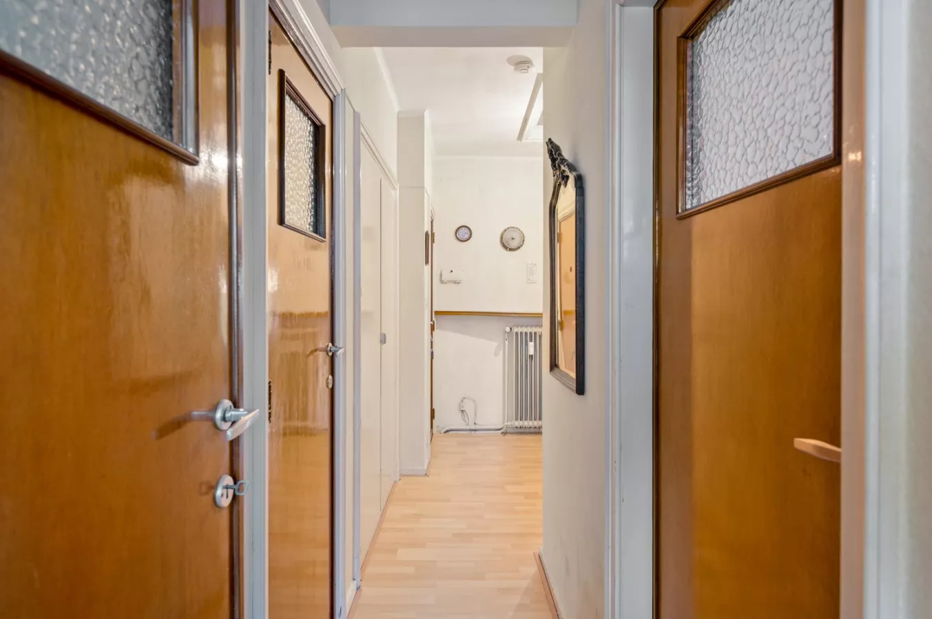 De inkomhal, met ingemaakte kasten, verwelkomt ons naar de lichtrijke leefruimte met de nodige ruimte en comfort.
