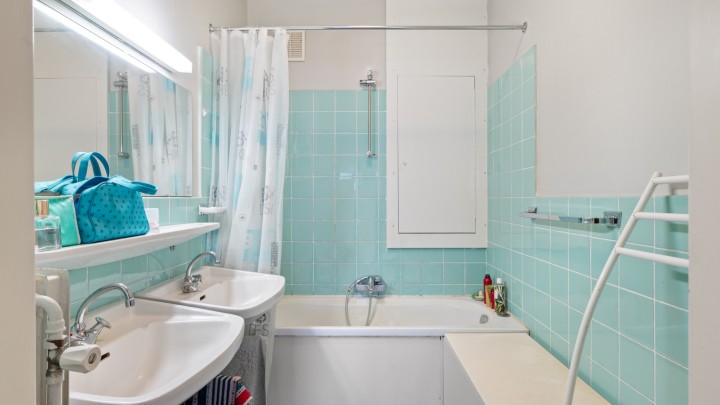 Het appartement beschikt over 3 slaapkamers (15m²/10m²/10m²) en een badkamer. Deze is uitgerust met een ligbad en dubbele lavabo.