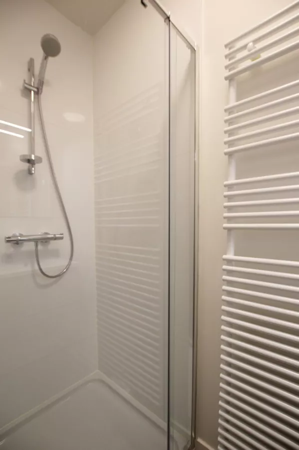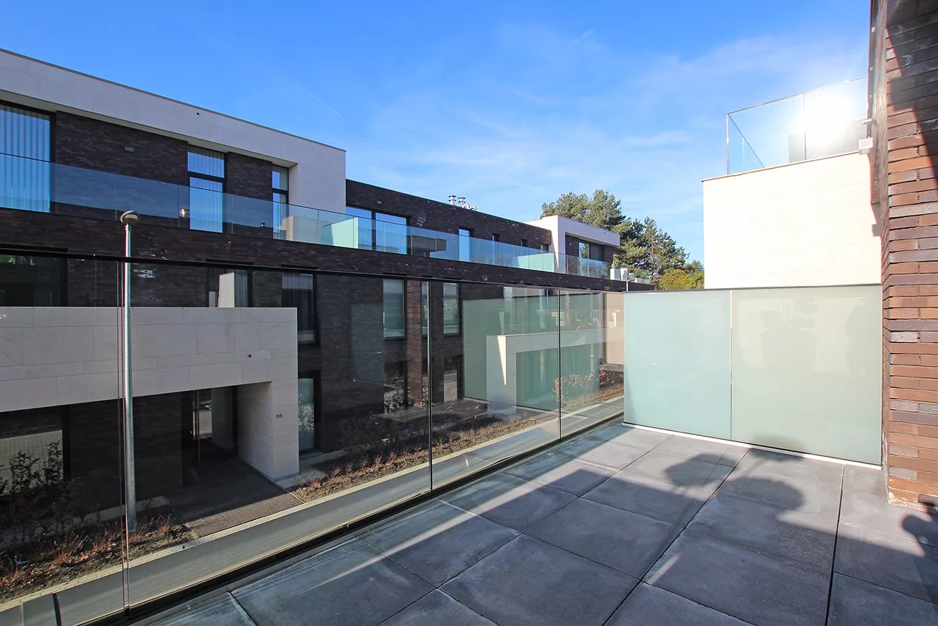 De hoofdslaapkamer (16m²) heeft een ensuite badkamer met ligbad, dubbel lavabomeubel en handdoekdroger en biedt bovendien directe toegang tot het tweede terras. Daarnaast zijn er nog een tweede en een derde slaapkamer (9m²/9m²), die eveneens toegang hebben tot dit terras. Verder is er een tweede badkamer met douche, enkele lavabo en een handdoekdroger.