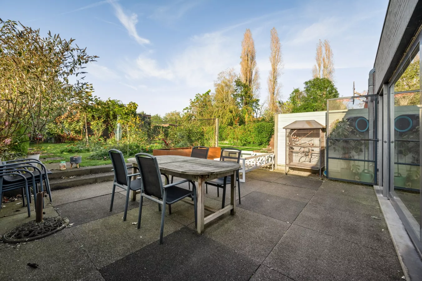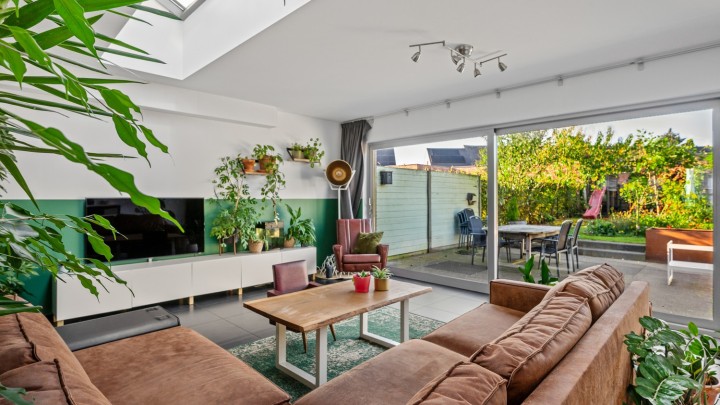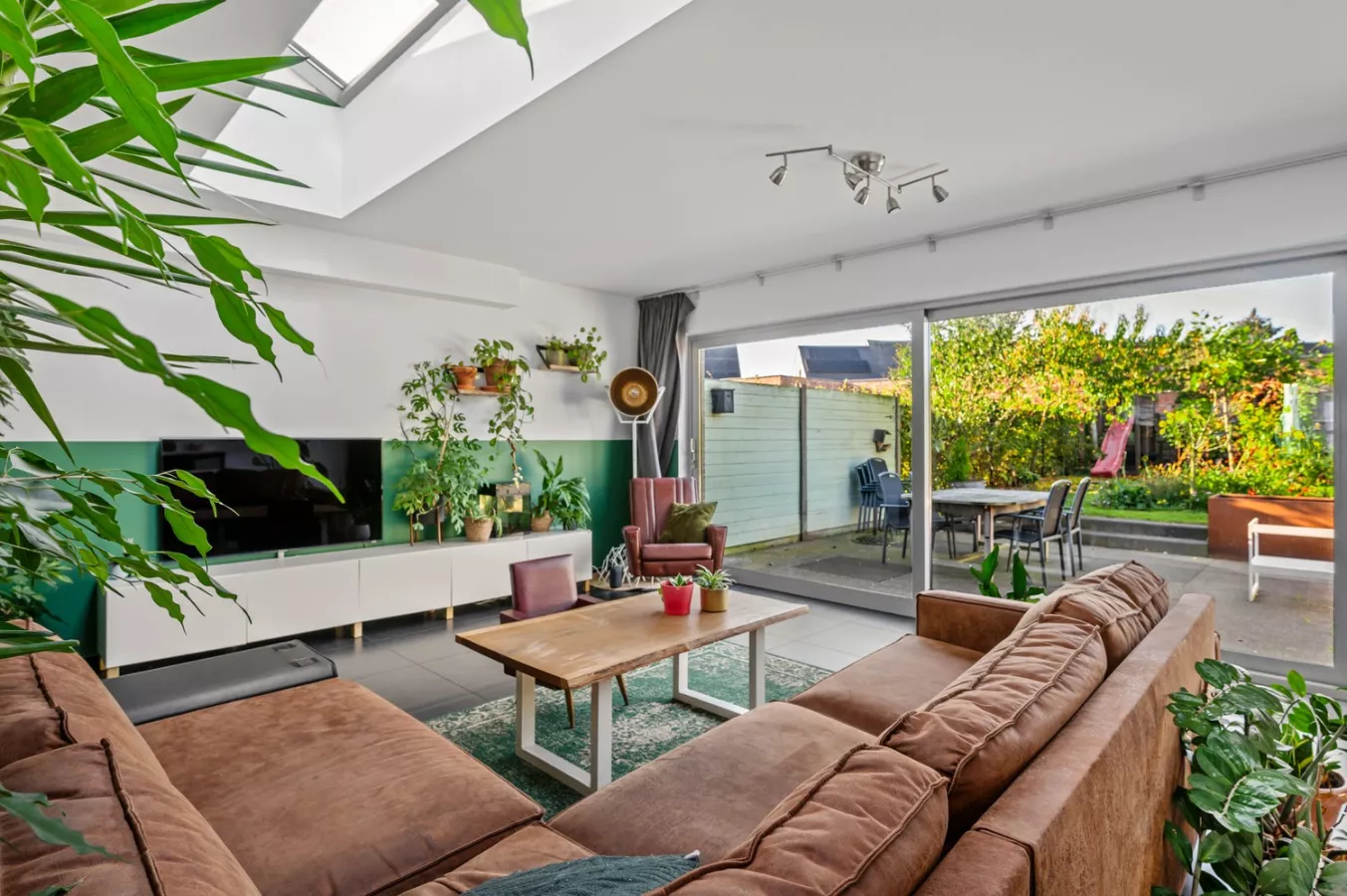 Het terras en de tuin zijn zowel bereikbaar via het schuifraam als een aparte deur in de woonkamer.