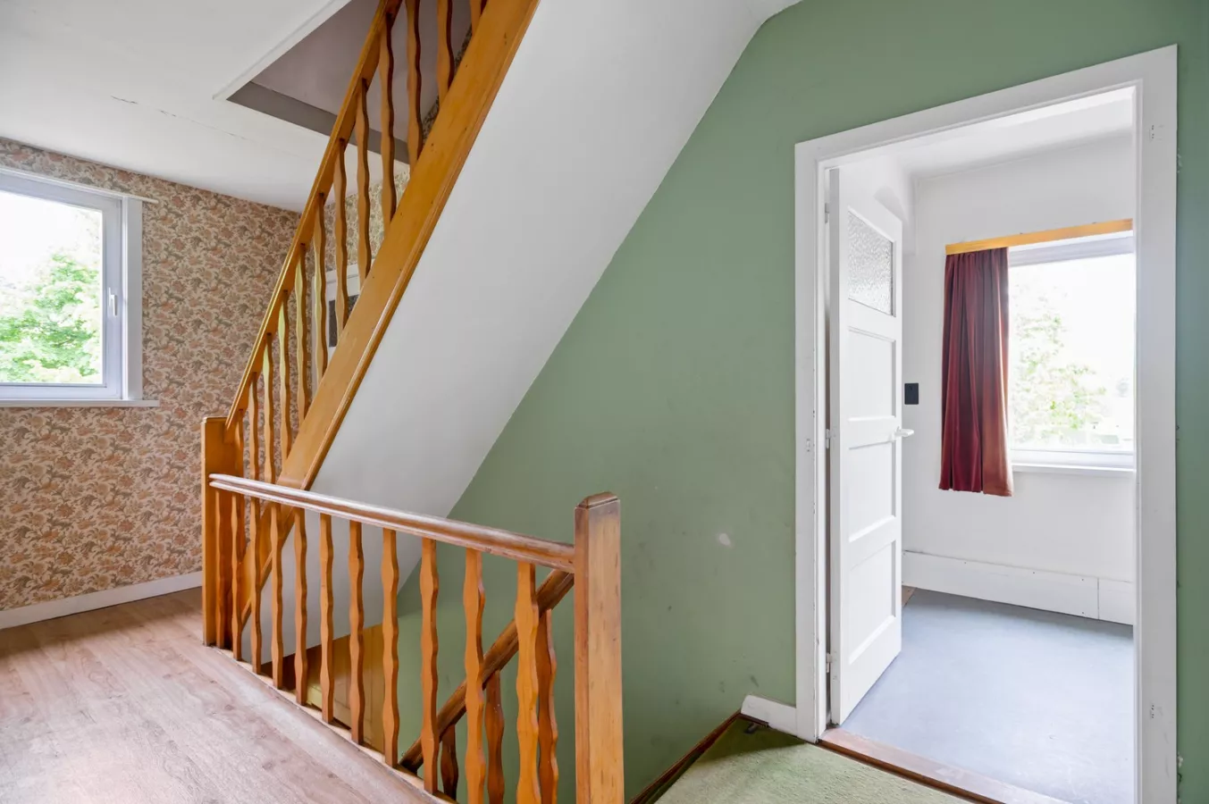 Verder zijn er op de eerste verdieping 3 slaapkamers (13,5m²/13m²/13m²) aanwezig. Vervolgens is er nog een zolder, bereikbaar via een vaste trap, opgedeeld in 2 ruimtes (16m²/8,5m²) welke nog als slaapkamer kan gebruikt worden.