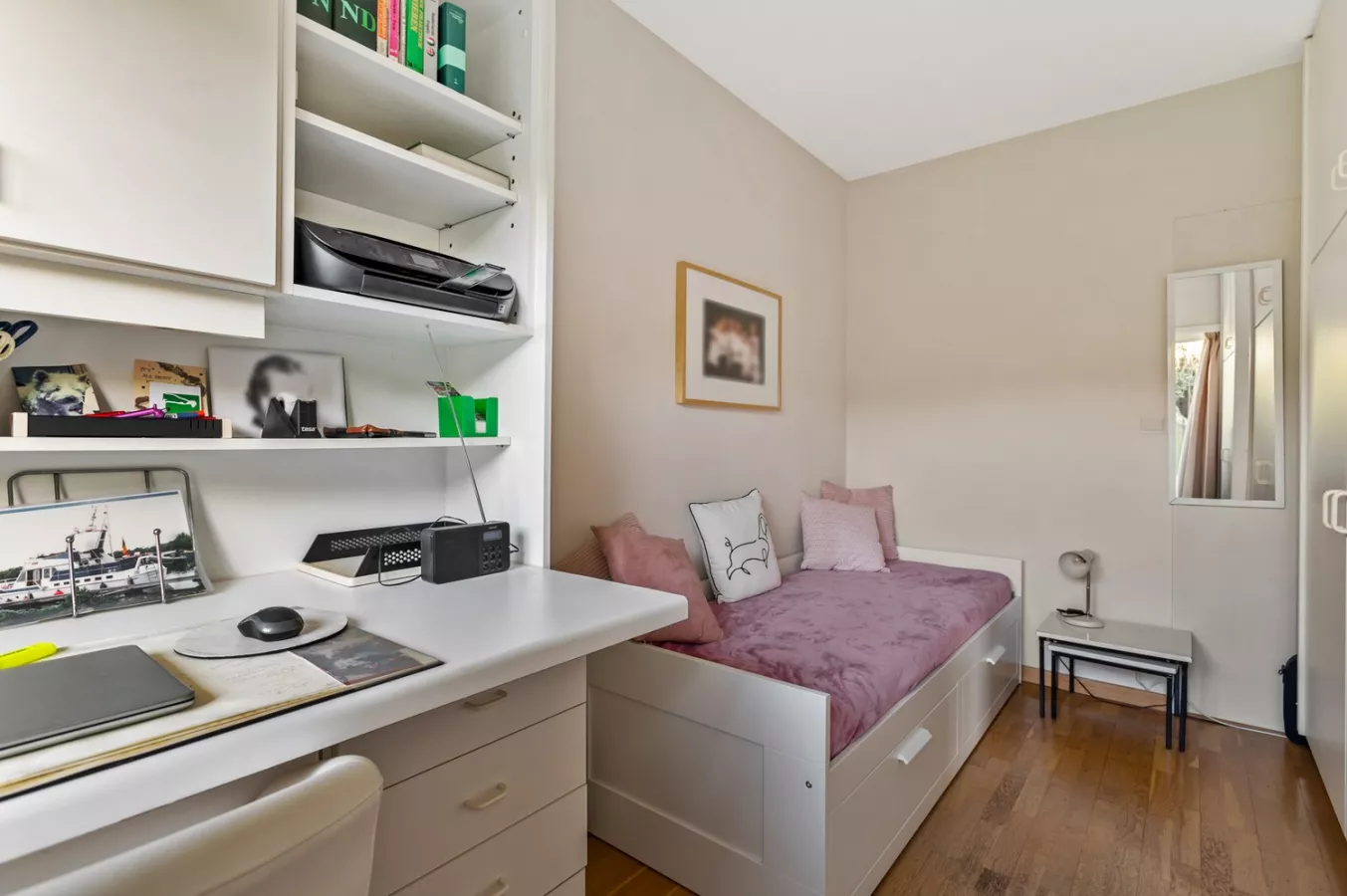 Verder beschikt het appartement over drie slaapkamers (ca. 15,5 m² / 12,5 m² / 9,5 m²), een apart gastentoilet en een badkamer. De badkamer is uitgerust met een inloopdouche, dubbele lavabo met spiegelkast en een handdoekwarmer.