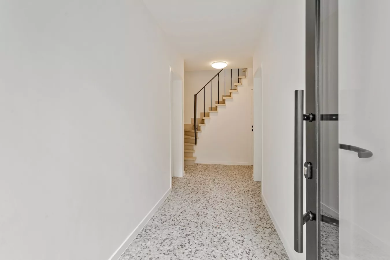 Achterin de leefruimte vindt men de kwaliteitsvolle gietijzeren deur die toegang geeft tot de nachthal.