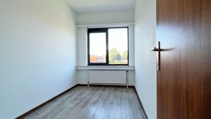 Verder treffen we de badkamer aan voorzien van een bad/douche, een staand toilet en een lavabomeubel met spiegelkast. Vervolgens bevindt er zich een berging met aansluiting voor de wasmachine en twee slaapkamers (13m² / 8m²). De grootste slaapkamer geeft toegang tot het leuke westelijk georiënteerd terras (5m²). Aan de voorzijde is er nog een tweede terras beschikbaar.