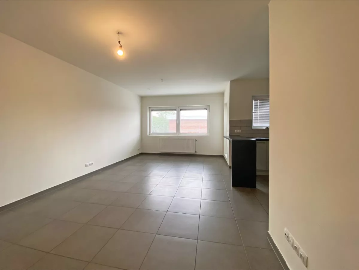 Inkomhal, leefruimte met open keuken, twee slaapkamers (10 m² / 7 m²), badkamer met douche en toilet en een praktische wasberging.