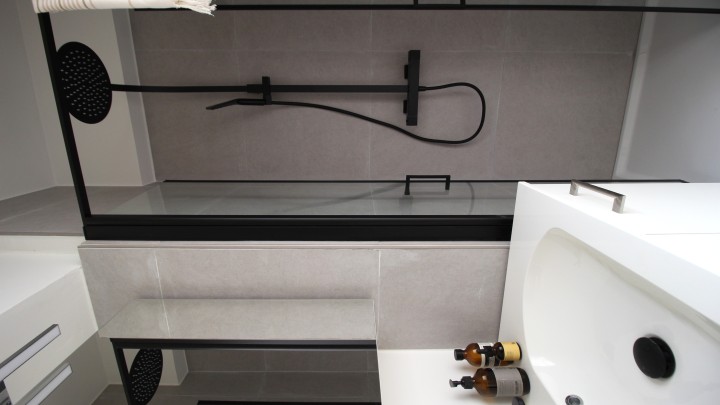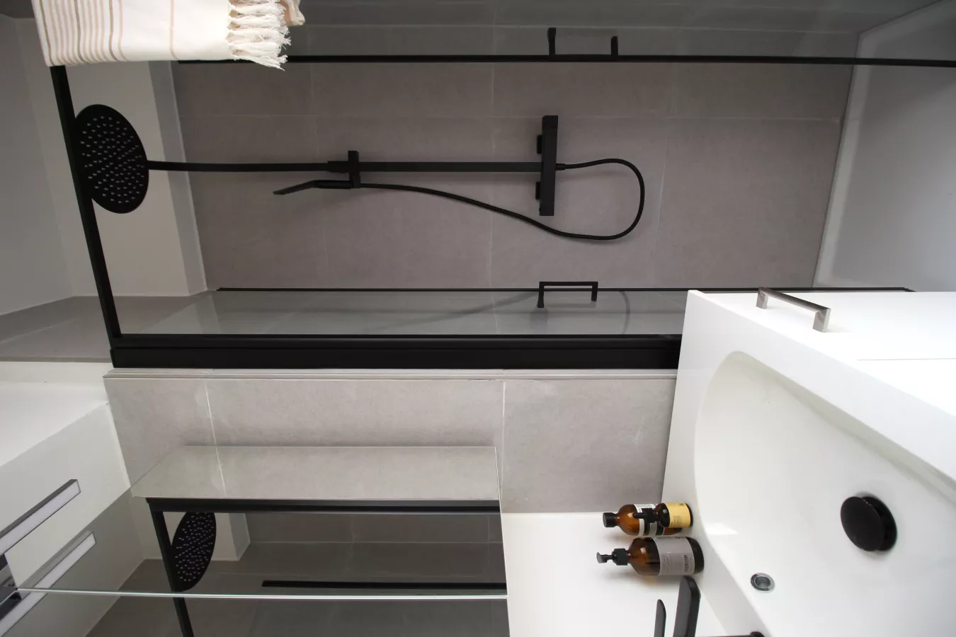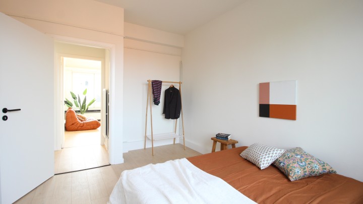 Het appartement beschikt ook nog over een ruime slaapkamer aan de achterzijde alsook een compacte, doch functioneel ingerichte badkamer voorzien van douche, lavabo met meubel en spiegel alsook toilet.