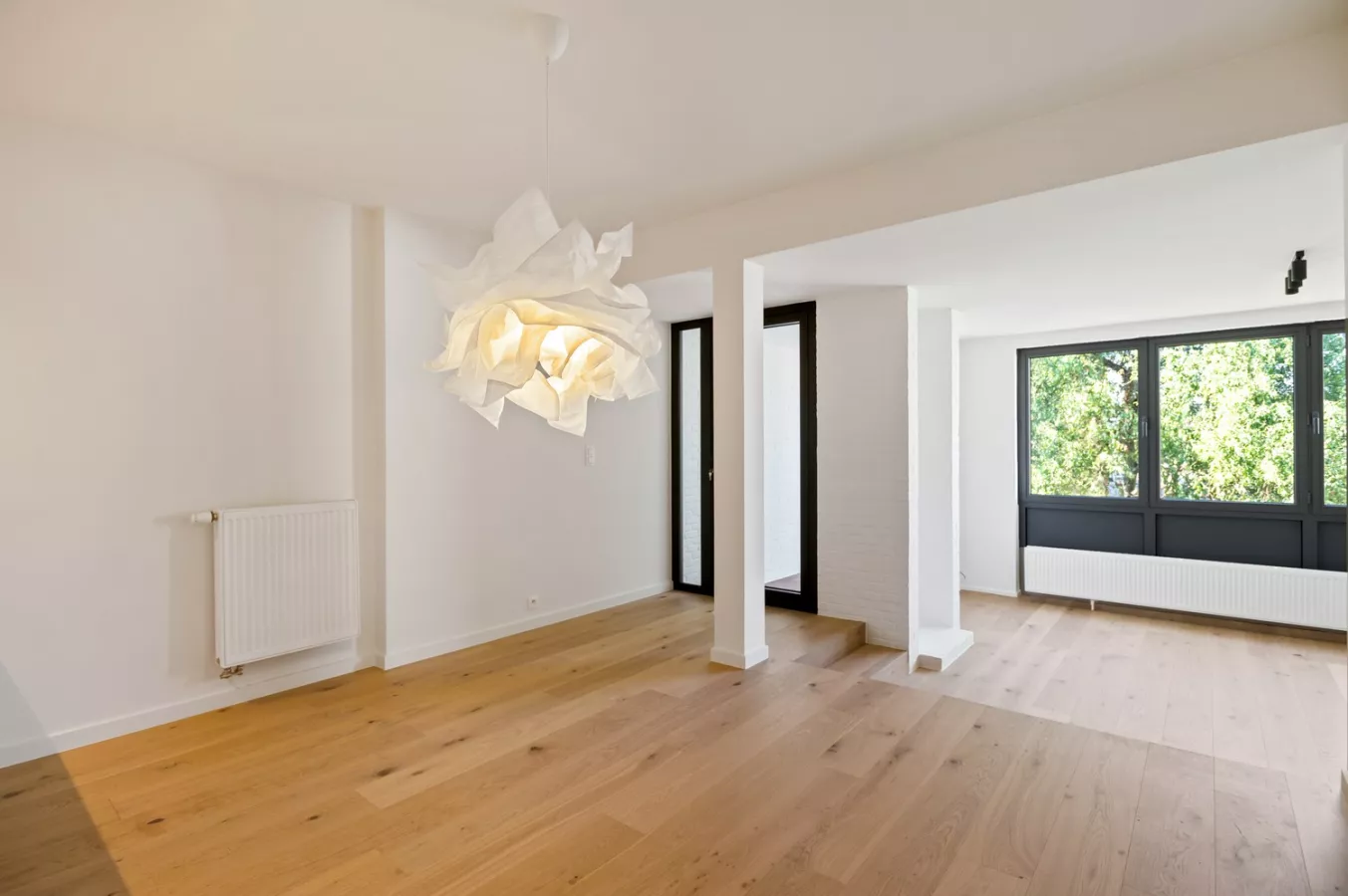 U komt binnen in de hal en loopt door naar de lichtinvalrijke leefruimte. Deze biedt doorgang naar het overdekt terras.