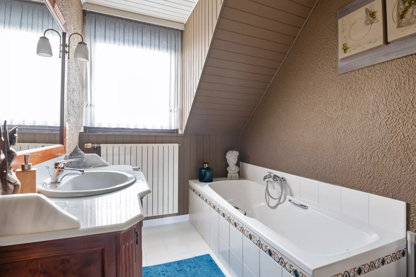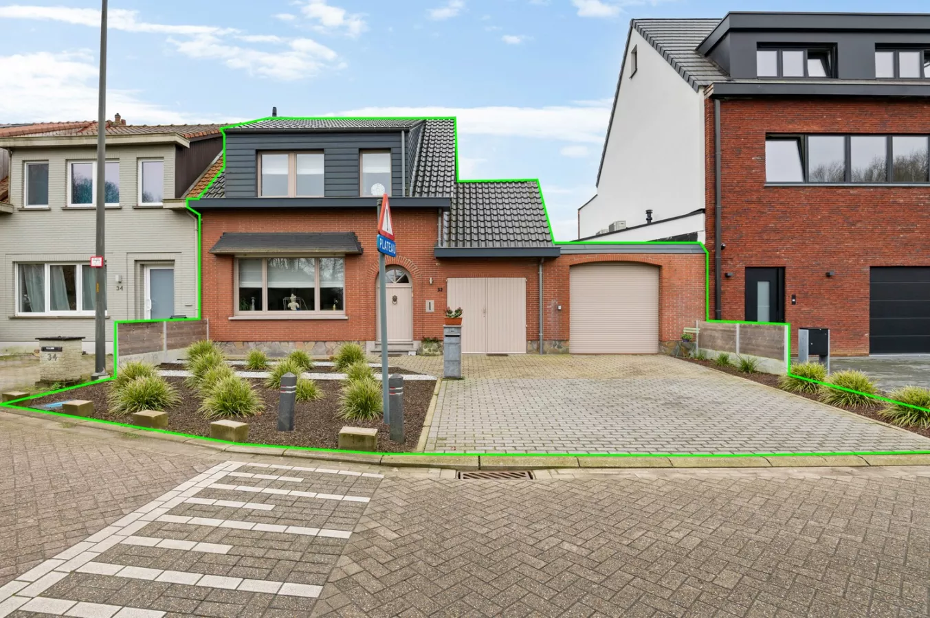 Tot slot geniet de woning van twee garages (15 m² / 12 m²). De grote garage beschikt over een elektrische poort. De kleine garage beschikt over een manuele poort.
