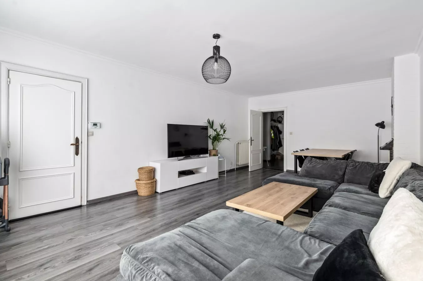 Bij binnenkomst wordt u verwelkomd in een ruime inkomhal met praktische vestiairekasten, van waaruit u toegang heeft tot alle ruimtes. De lichte leefruimte geniet dankzij een groot schuifraam van een overvloed aan daglicht. Van hieruit bereikt u ook het balkon.