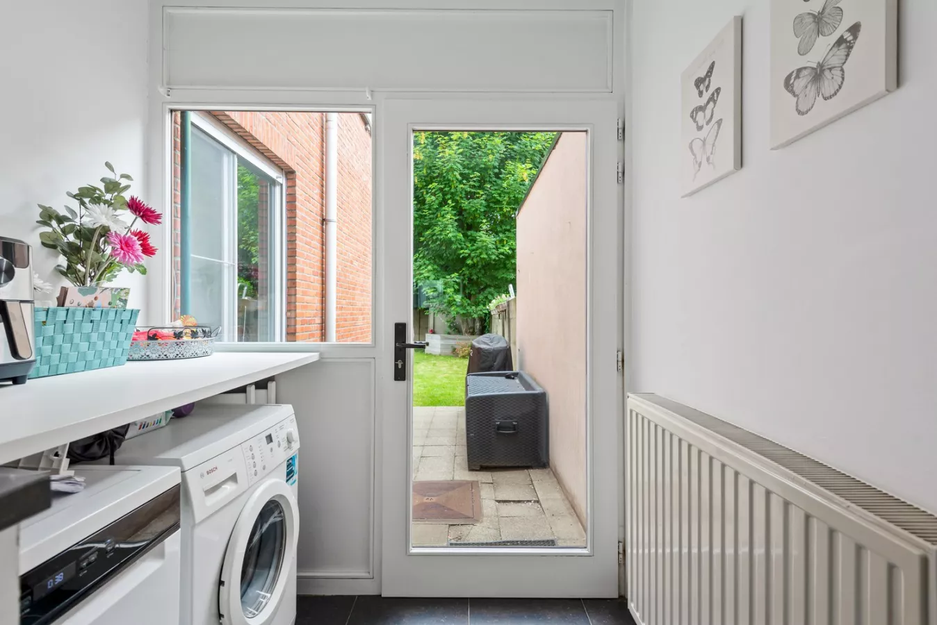 In de woonkamer is er een doorgeefluikje naar de keuken toe dat een gezellige toets geeft aan zowel de woonkamer als de keuken.