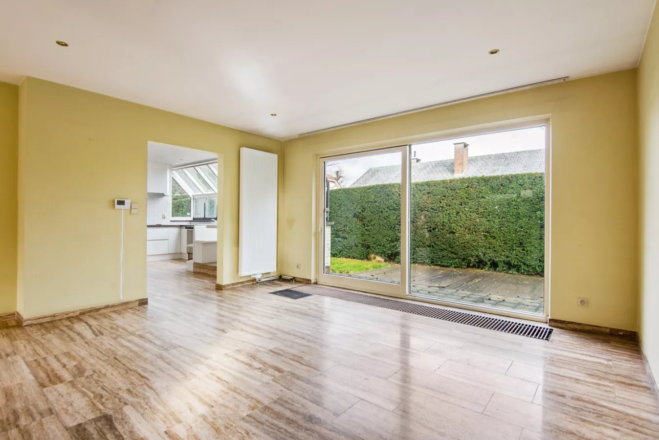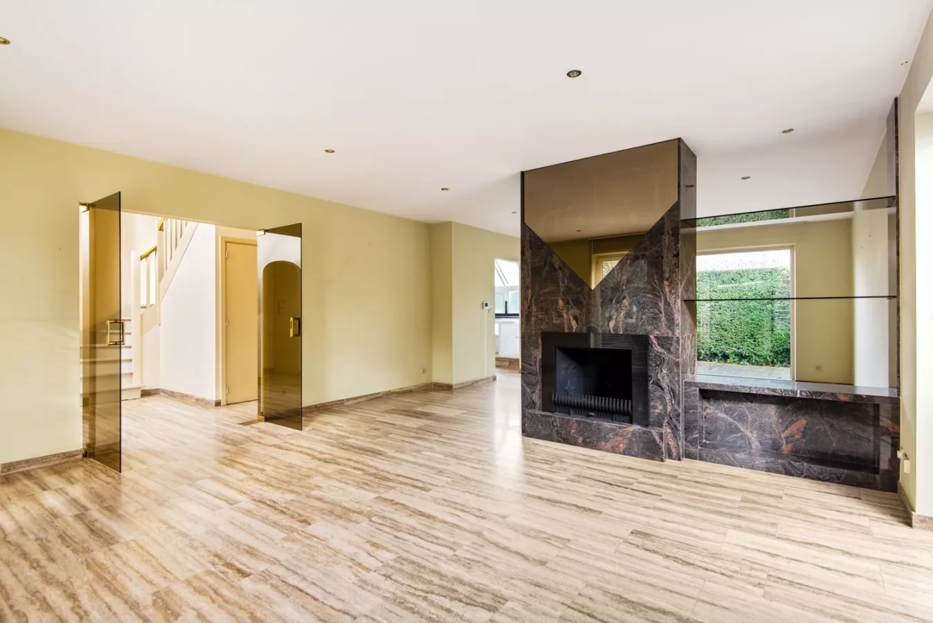 We betreden de woning via de inkomhal met een apart gastentoilet. De glazen deuren geven toegang tot de lichtrijke leefruimte, waar de grote raampartijen zorgen voor een overvloed aan natuurlijk daglicht en een aangename sfeer. De authentieke natuursteenelementen geven het geheel extra karakter en zorgen voor een warme uitstraling. Vanuit de woonkamer geniet u van een mooi zicht op het terras en de tuin.