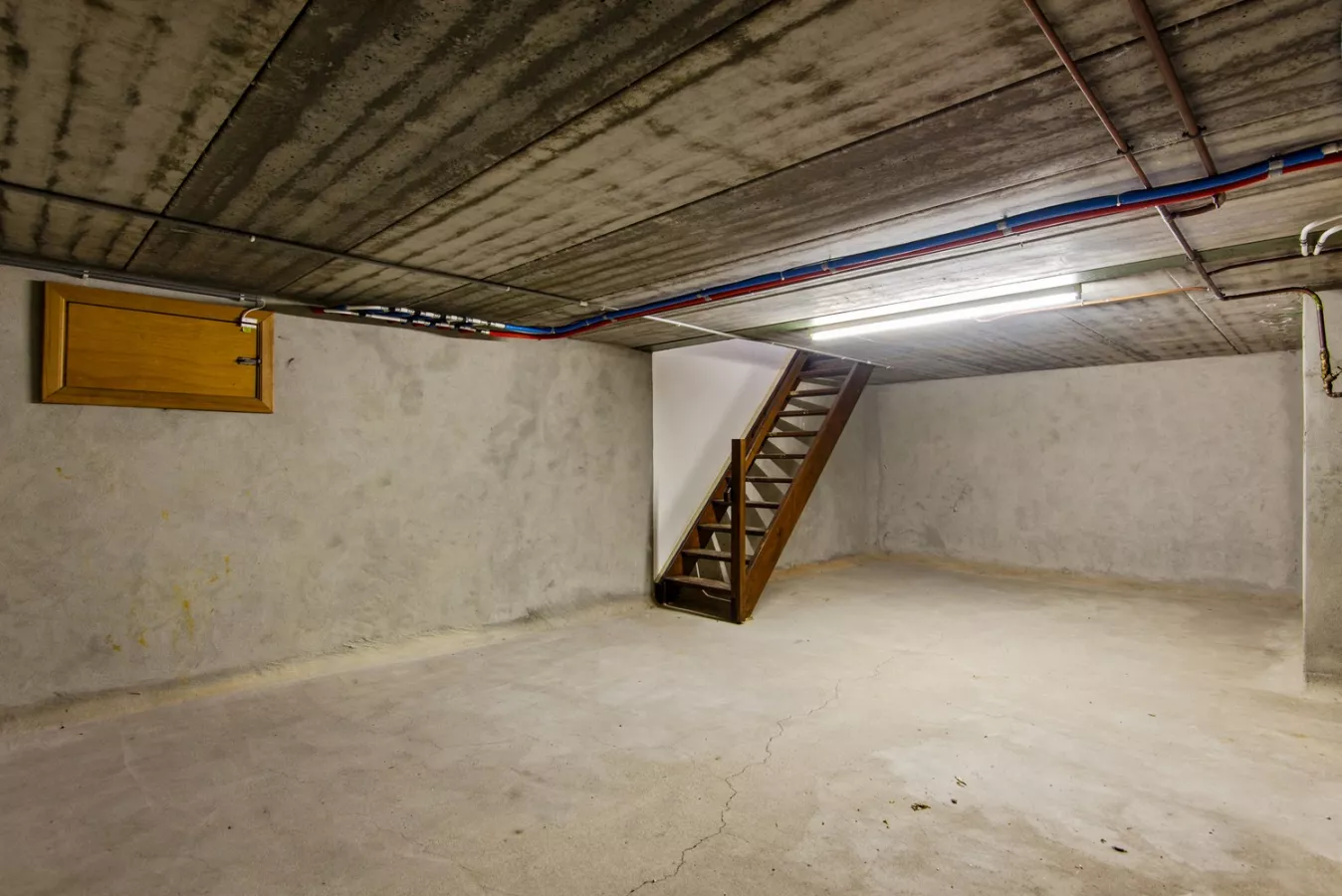 Aansluitend treffen we de ruime keuken met voldoende plaats voor een ontbijthoek en directe toegang tot een praktische bergruimte. Vanuit de hal leidt een trap naar de verzorgde en bijzonder ruime kelderverdieping, die eveneens toegang biedt tot de kruipkelder, ideaal als extra stockage- of hobbyruimte.