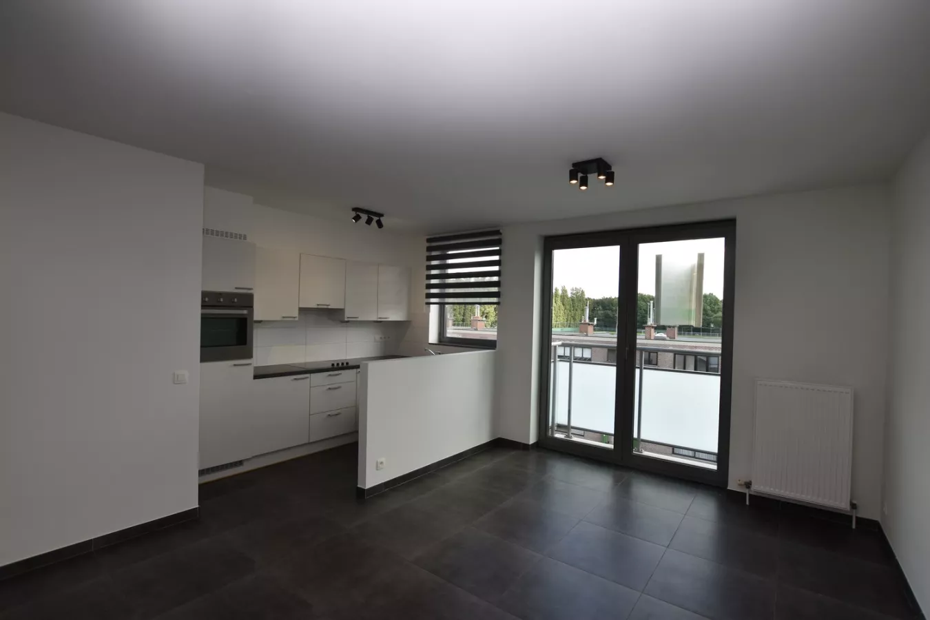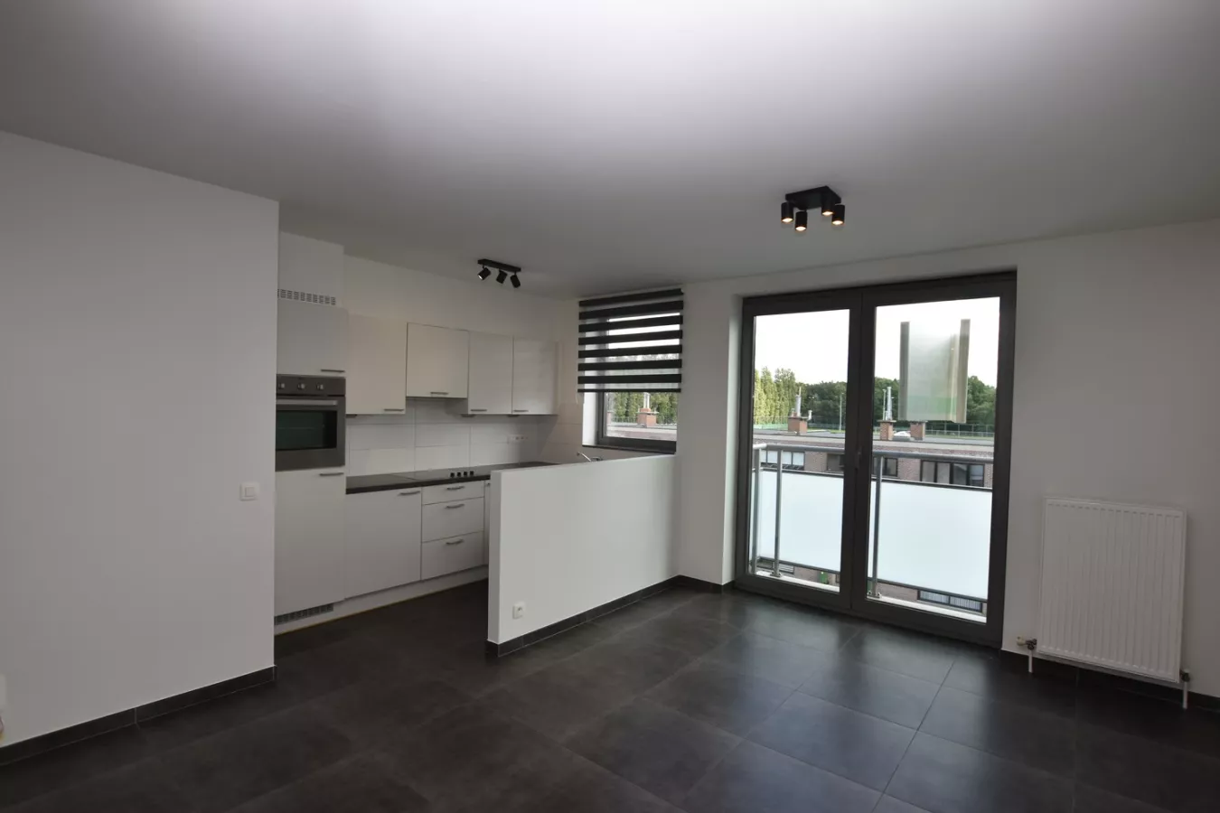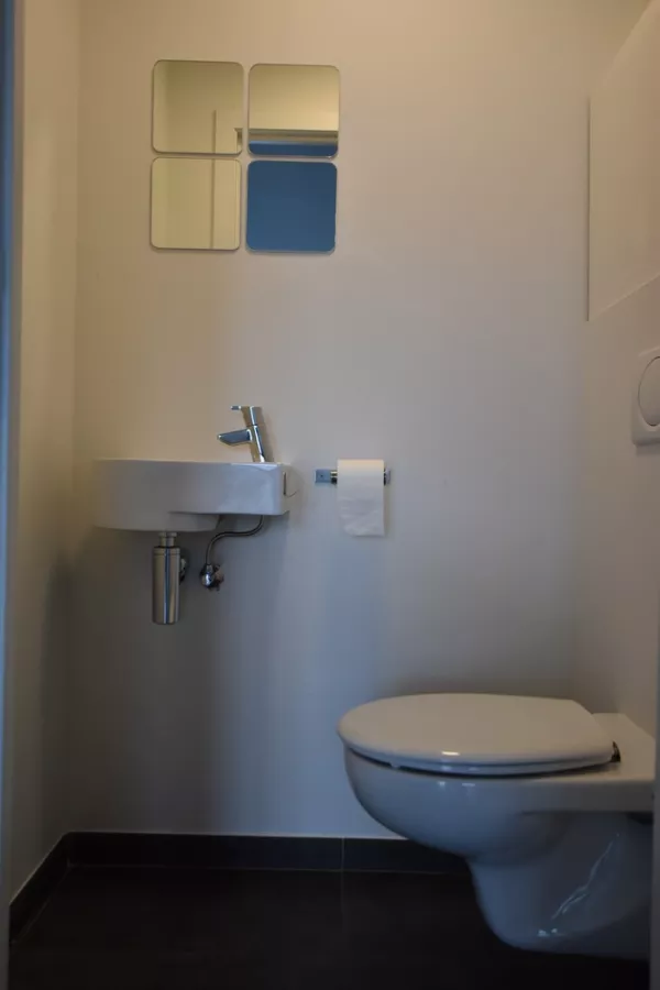U betreedt dit gezellig appartement onmiddellijk in de leefruimte met een volledig ingerichte open keuken en doorgang naar het zuid-oost gericht balkon. De keuken beschikt over een ijskast met vriesvak, oven, keramische kookplaat, enkele spoelbak met afgiet, dampkap en vaatwasser. Via de slaapkamer bereikt u de badkamer, deze heeft een enkel lavabomeubel, douchecabine en een aansluiting voor de wasmachine. U vindt er ook een apart WC met handenwasser.
