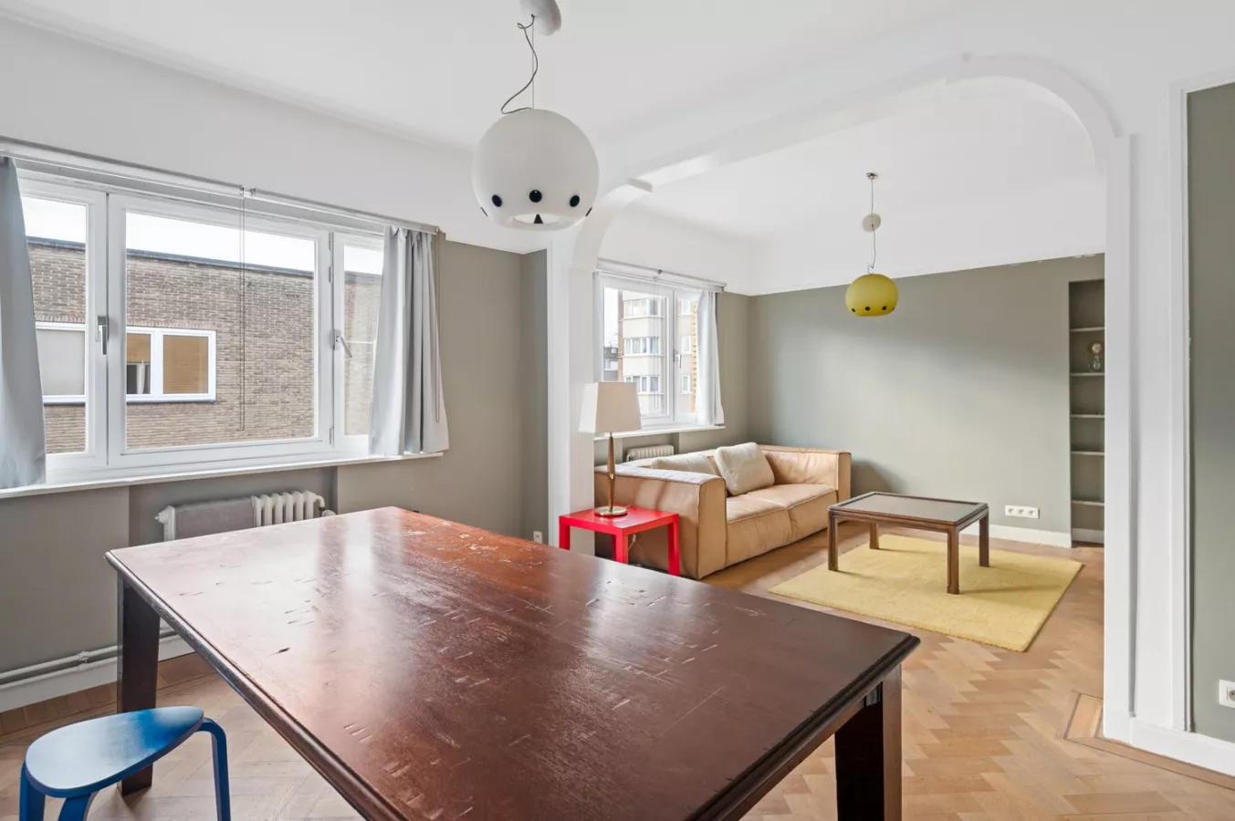 Het appartement is gelegen in de rustige en geliefde Tentoonstellingswijk, op de hoek met Camille Huysmanslaan en Ryckmansstraat. Deze unieke locatie voorziet het appartement van enorm veel natuurlijkdaglicht.