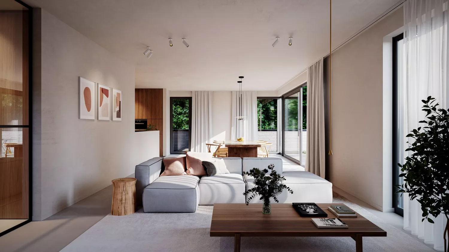 Alle appartementen worden voorzien van een kwalitatieve afwerking waarin u zelf nog de hand heeft. Op deze manier kan u uw appartement volledig naar eigen smaak en keuze laten inrichten.