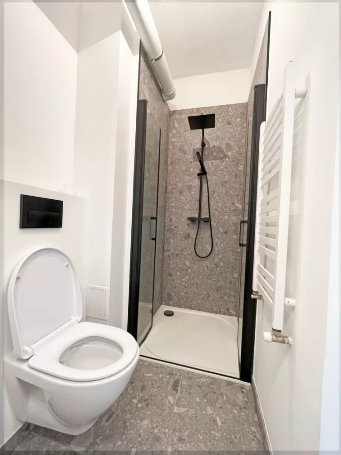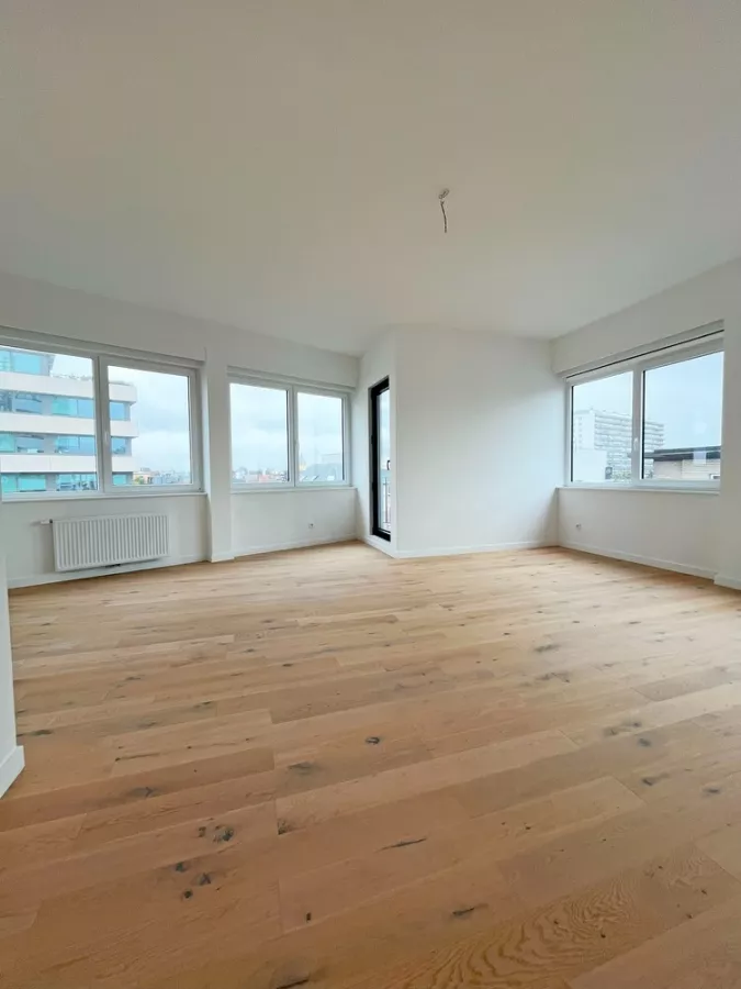 Deze hoekstudio, gelegen op de vierde verdieping, omvat een inkomhal, leefruimte met veel lichtinval, ingerichte keuken en badkamer met inloopdouche en toilet.