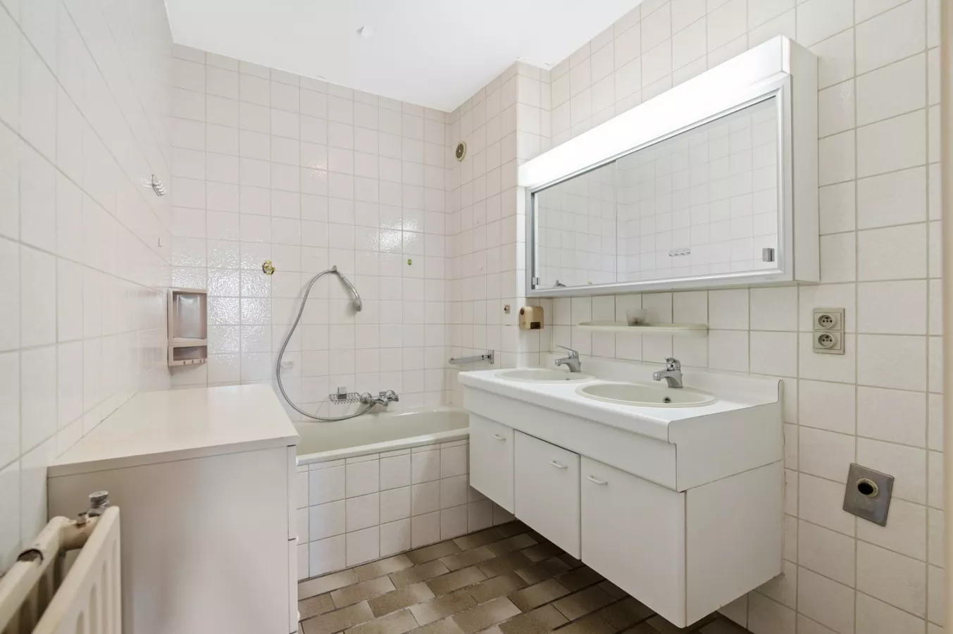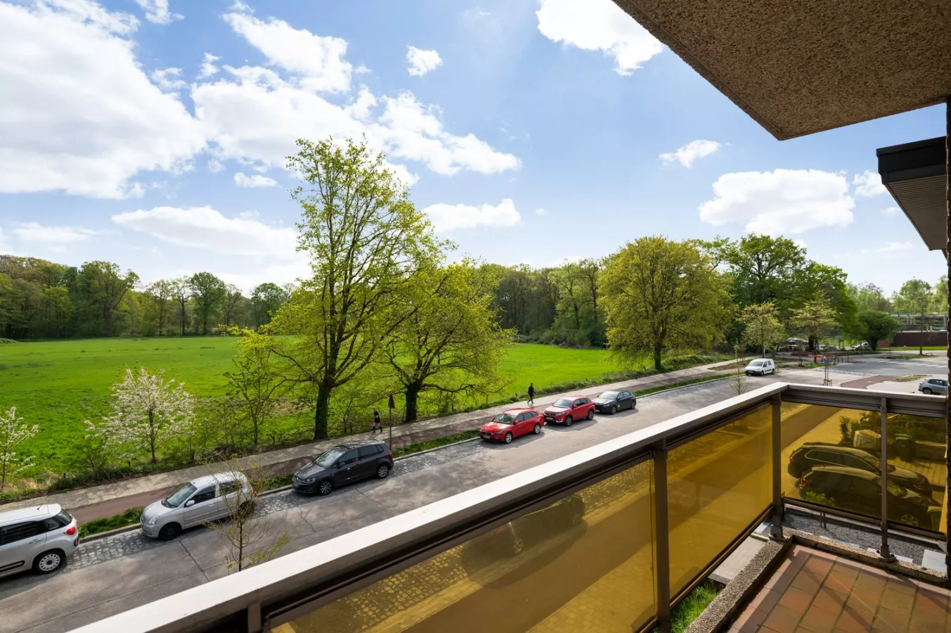 We betreden het appartement via de ruime inkomhal, waarna we in de leefruimte met aansluitend de keuken komen. Hier heeft u vooraan een fantastisch groen uitzicht!