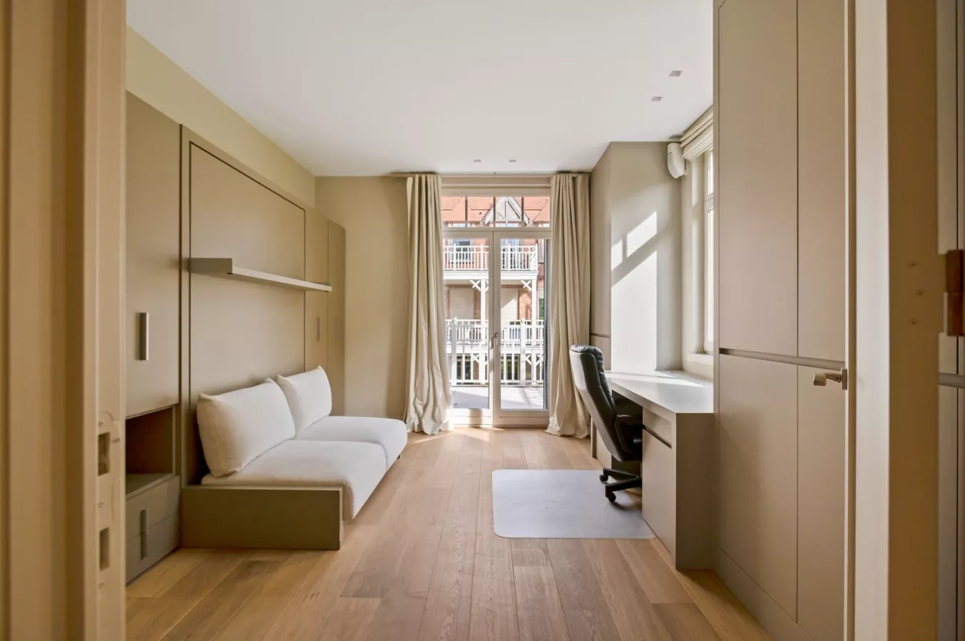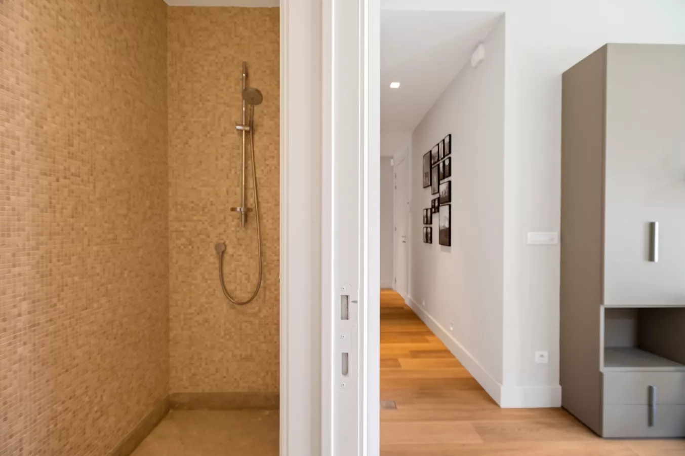Deze slaapkamer biedt toegang tot het derde terras. De badkamer is uitgerust met een dubbele lavabo, een inloopdouche met regendouche, ingebouwde kasten en een hangtoilet.