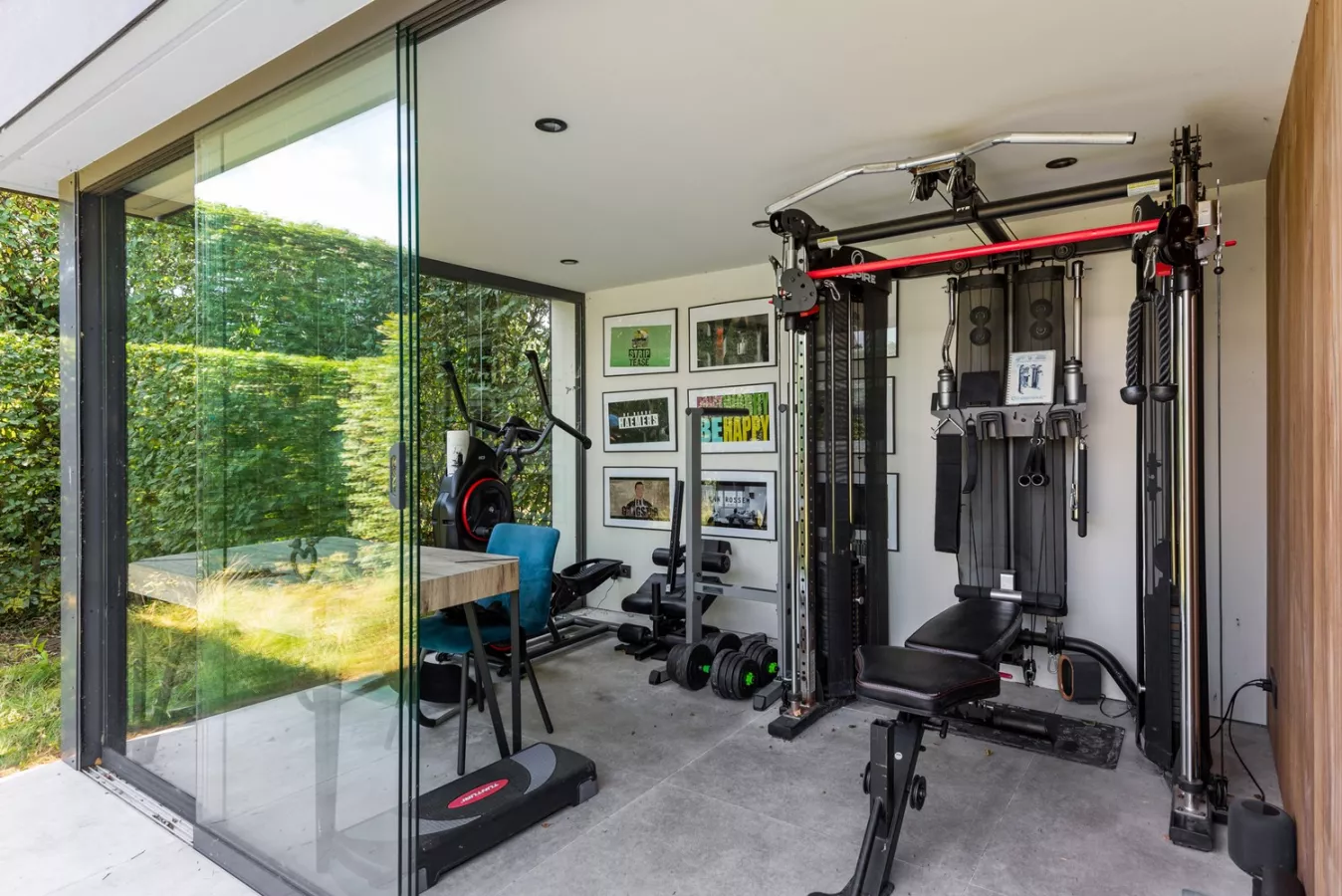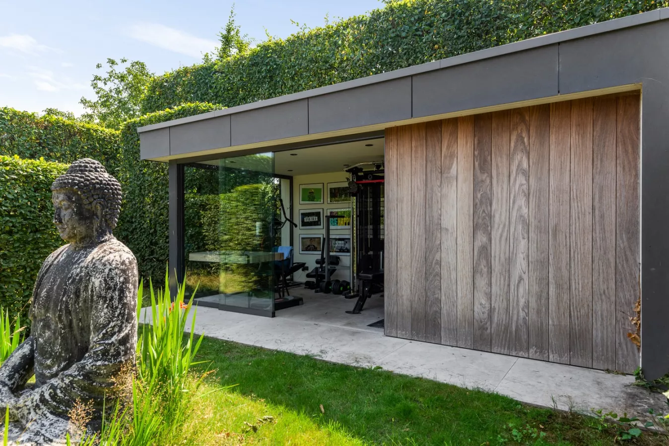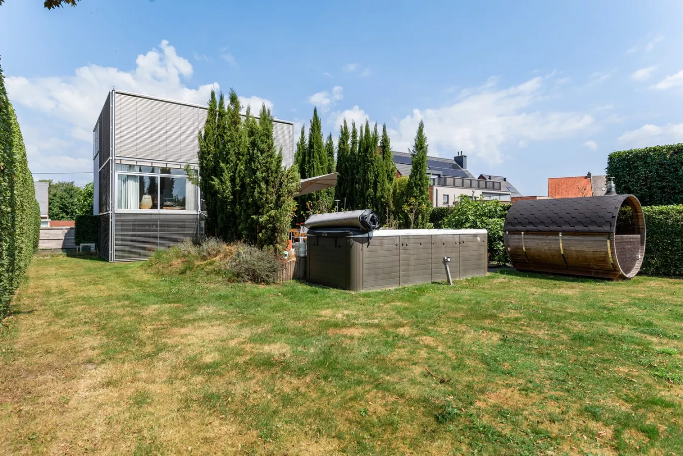Een unieke troef voor wie ontspanning en luxe zeer belangrijk zijn. Achteraan in de tuin bevindt zich een tuinhuis dat momenteel deels is ingericht als welness/fitness en bureau ruimte.