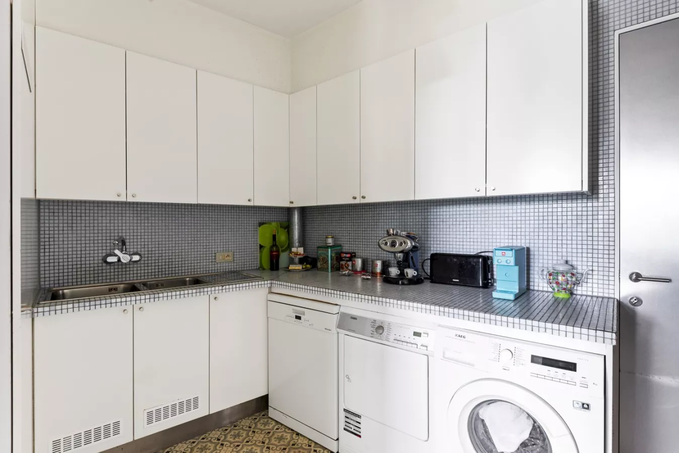 Daarnaast beschikt de woning over een praktische bijkeuken, voorzien van aansluitingen voor wasmachine en droogkast en een dubbele lavabo.