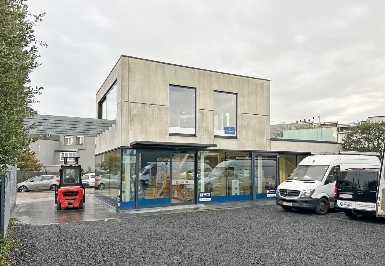 Modern en lichtrijk handelspand/kantoor met magazijn (300m²) te huur in Wijnegem!