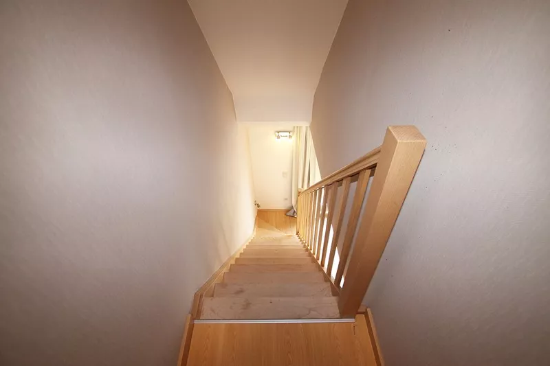 Een inkomhal met vestiaire, leefruimte met toegang tot het terras vooraan (8 m²), volledig geïnstalleerde keuken met toegang tot het terras achteraan (29 m²). Op deze verdieping bevindt zich eveneens de badkamer. Via een trap in de leefruimte bereiken we de vierde verdieping die beschikt over een slaapkamer met een diepe ingemaakte kast, toilet en een bergruimte.