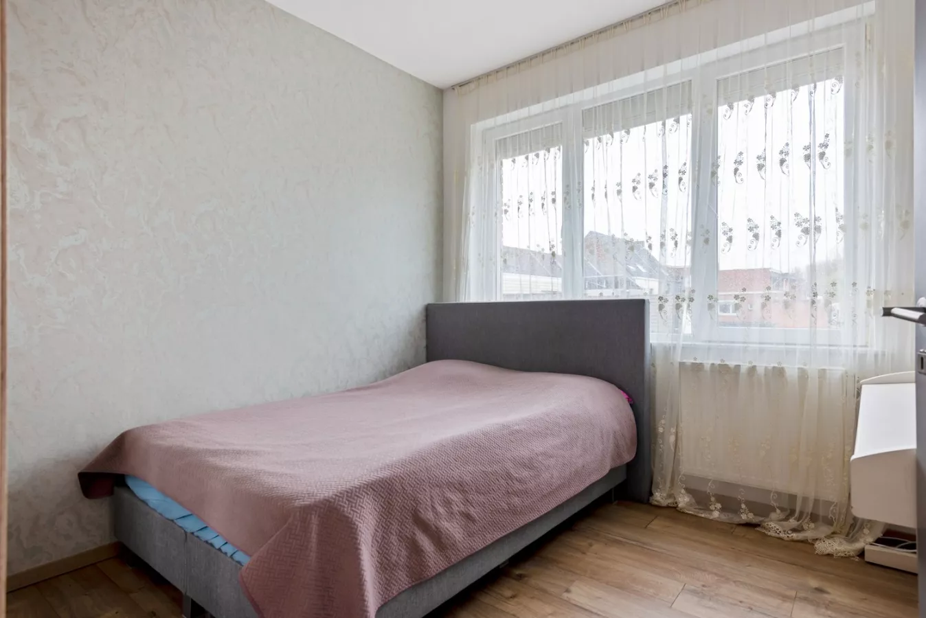 Verder treffen we op het gelijkvloers de inpandige garage die momenteel wordt gebruikt als extra slaapkamer.