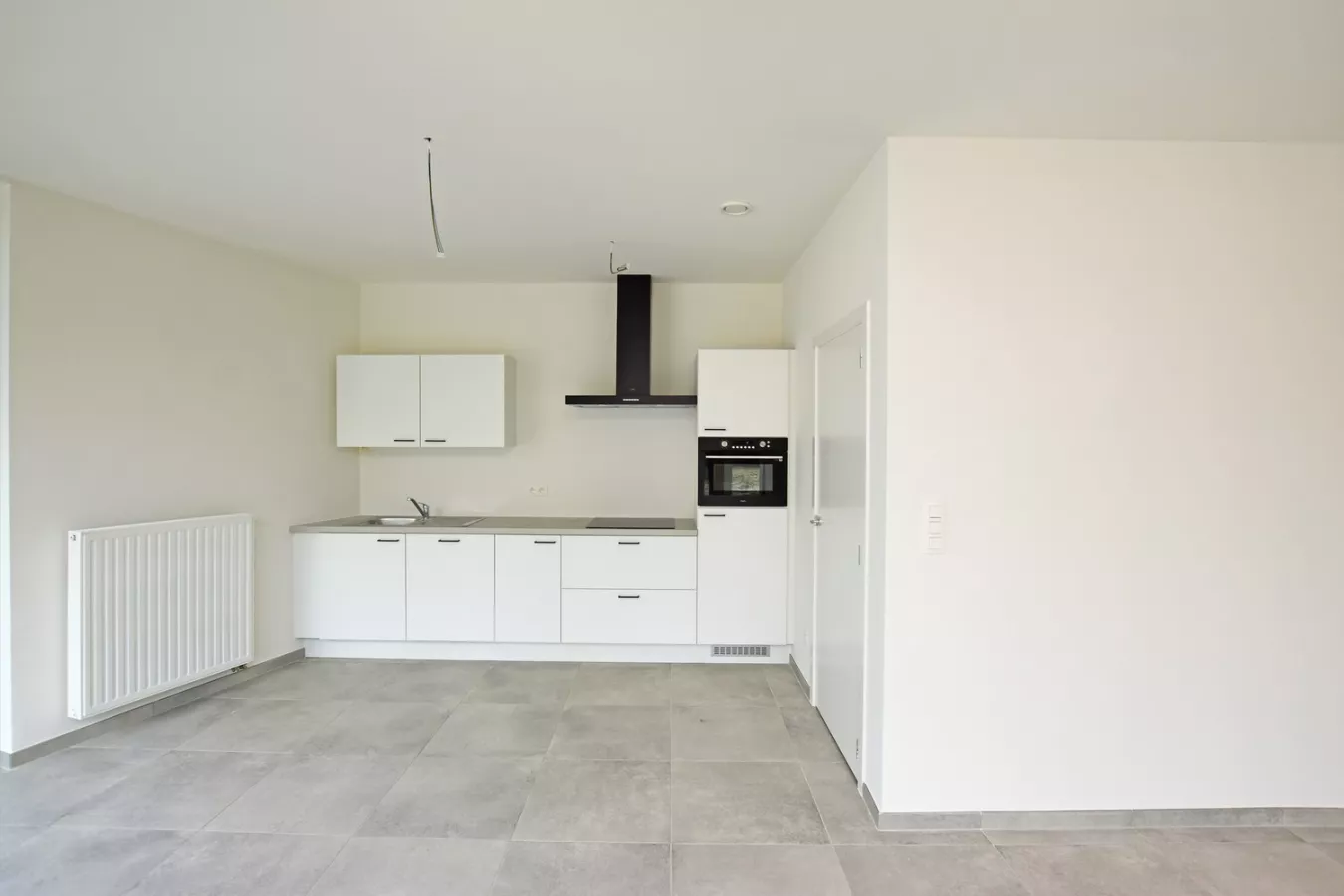 Inkomhal, leefruimte met volledig geïnstalleerde open keuken voorzien van alle toestellen, berging en een apart toilet.