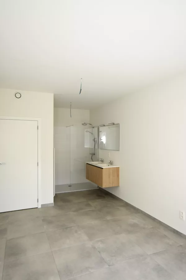Het appartement beschikt over één ruime slaapkamer met een ensuite badkamer met inloopdouche en dubbel lavabomeubel.