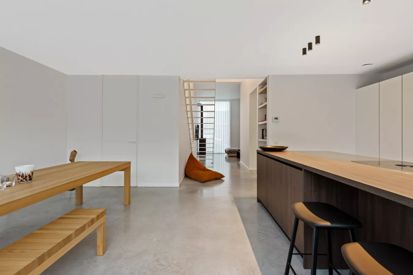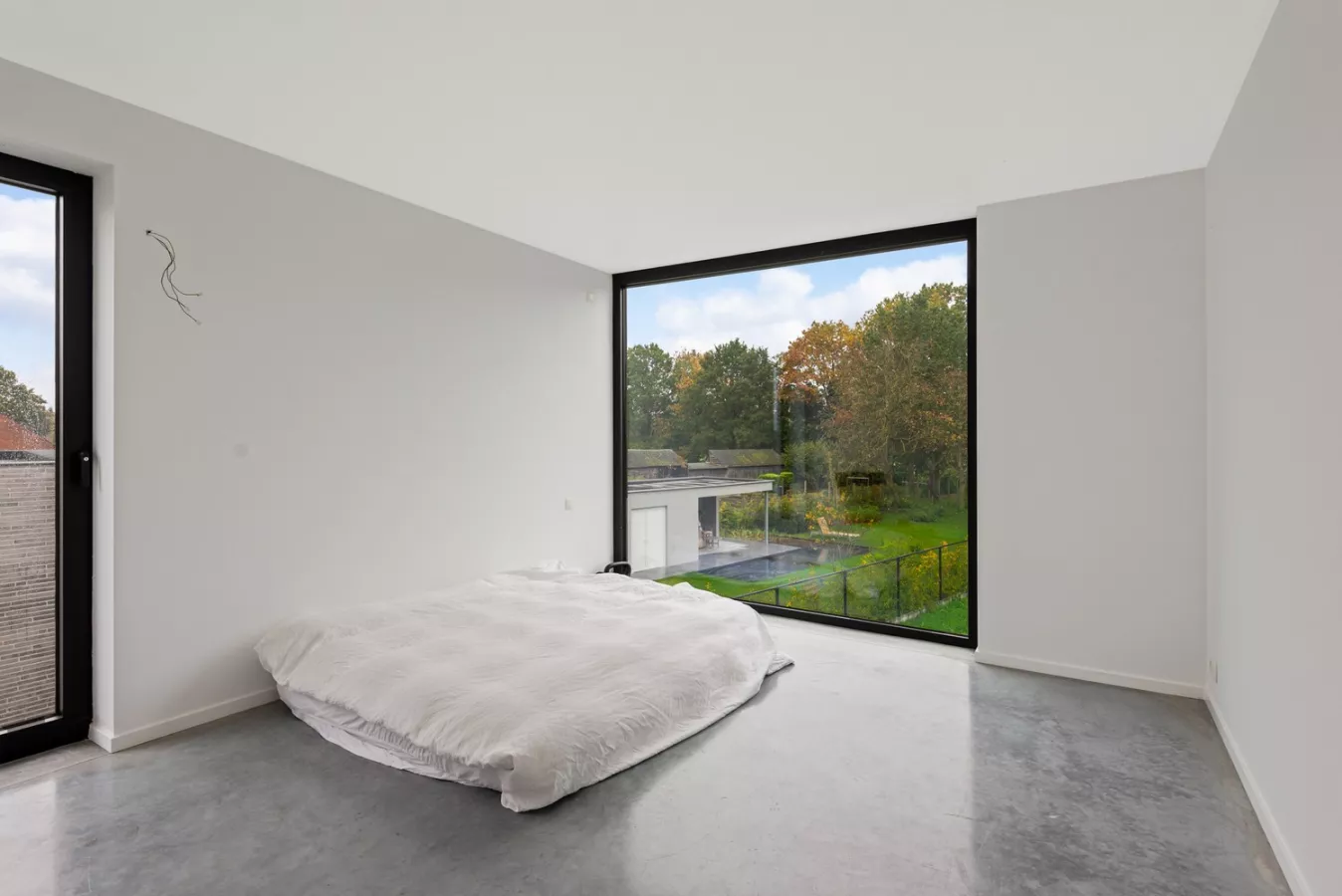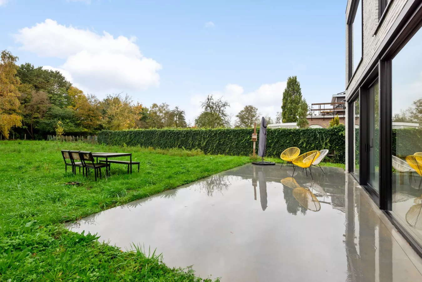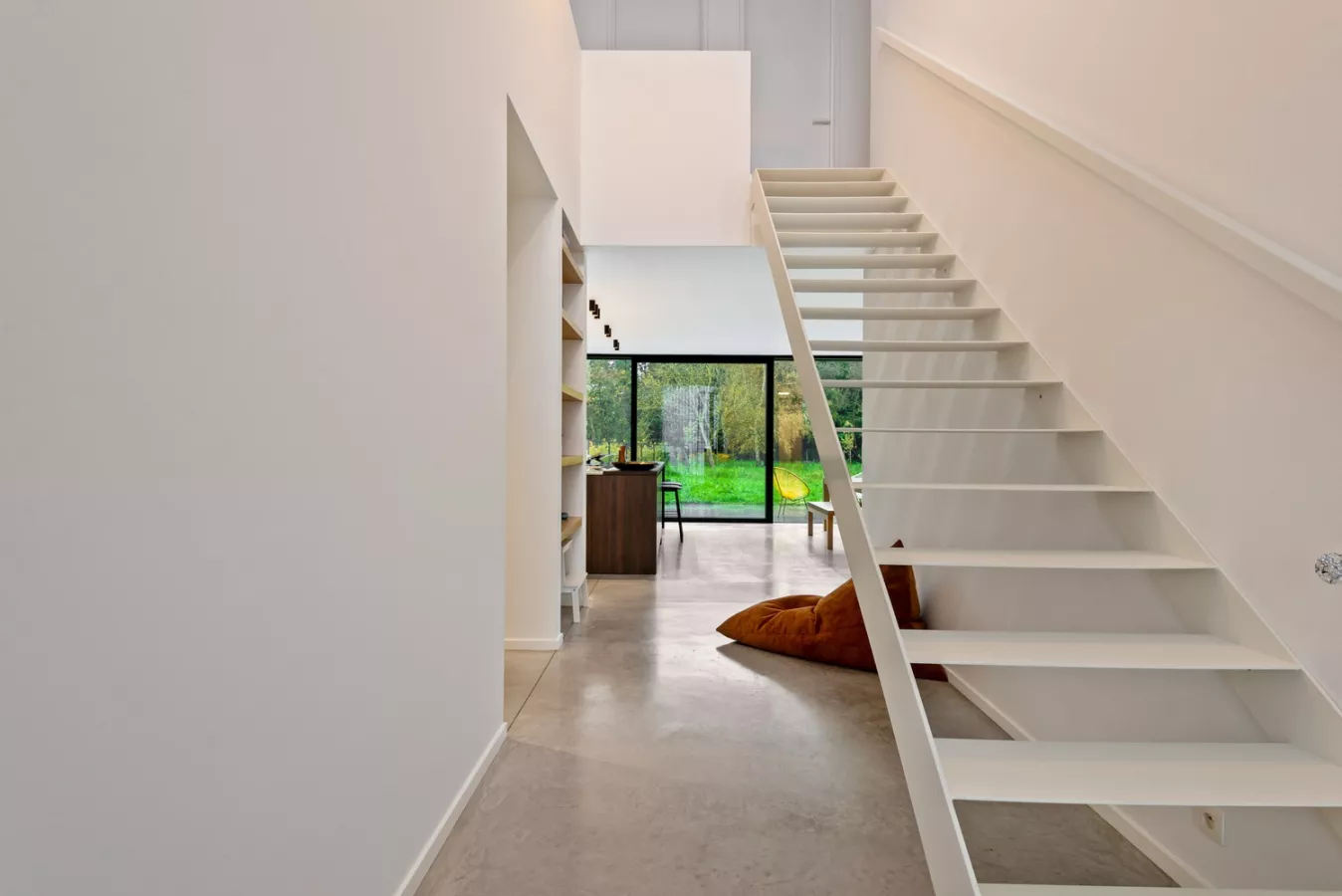 De villa heeft een modern interieur met een aangenaam loft gevoel en groen zicht achteraan.