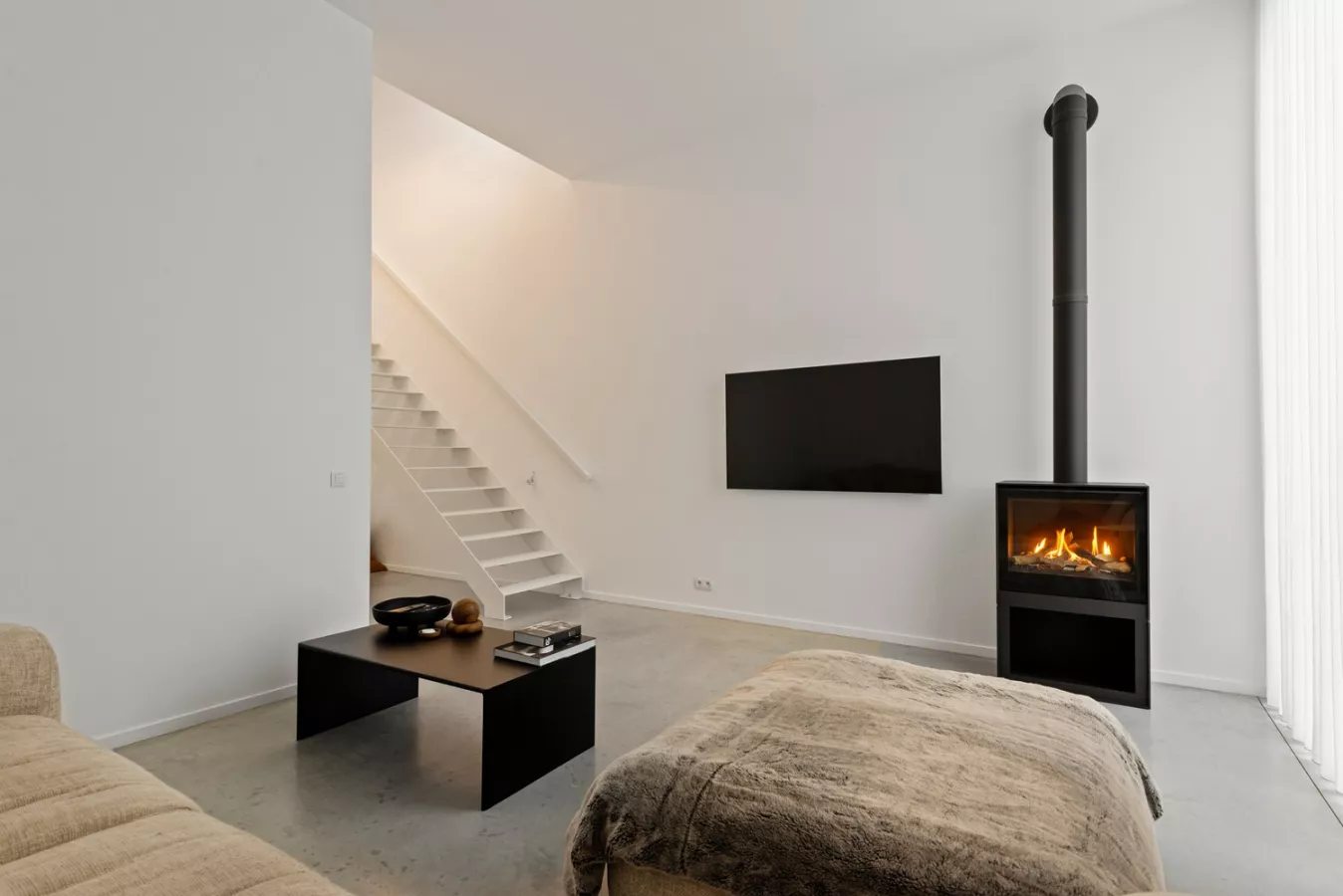 Vooraan de villa is er de gezellige woonkamer/zitruimte met gashaard.