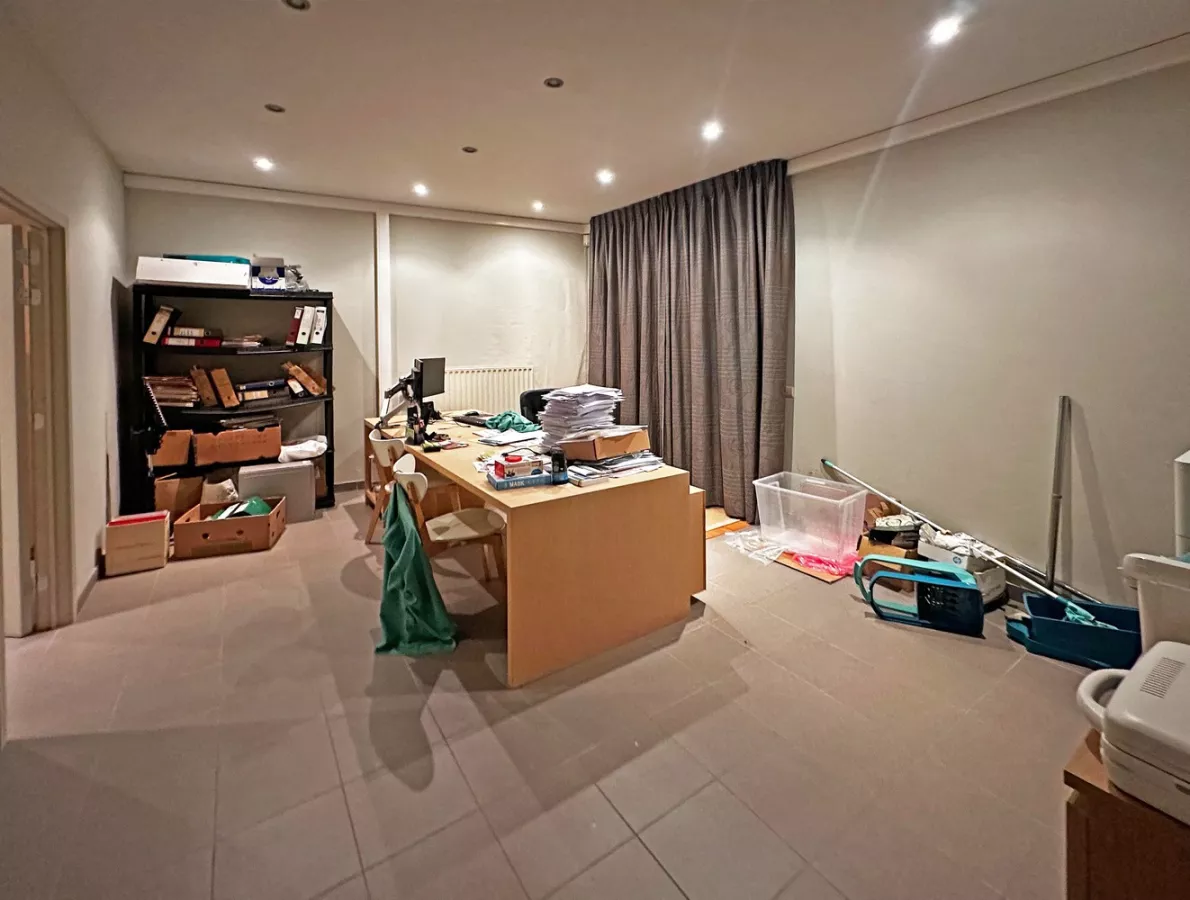 Terug in de gemeenschappelijke inkomhal, aan de rechterkant, vindt u nog een grote bureau ruimte. Daarachter is er nog een bureau ruimte met aanliggend een kitchenette. Deze kitchnette heeft een spoelbak in roestvrij staal met opbergruimte eronder.