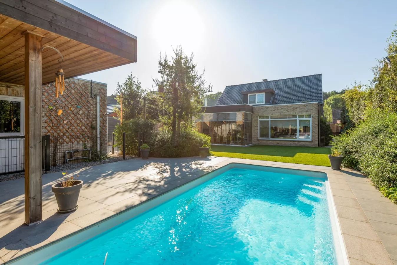 Prachtige, ruime energiezuinige woning met 3 slaapkamers, zwembad & garage te Brasschaat!