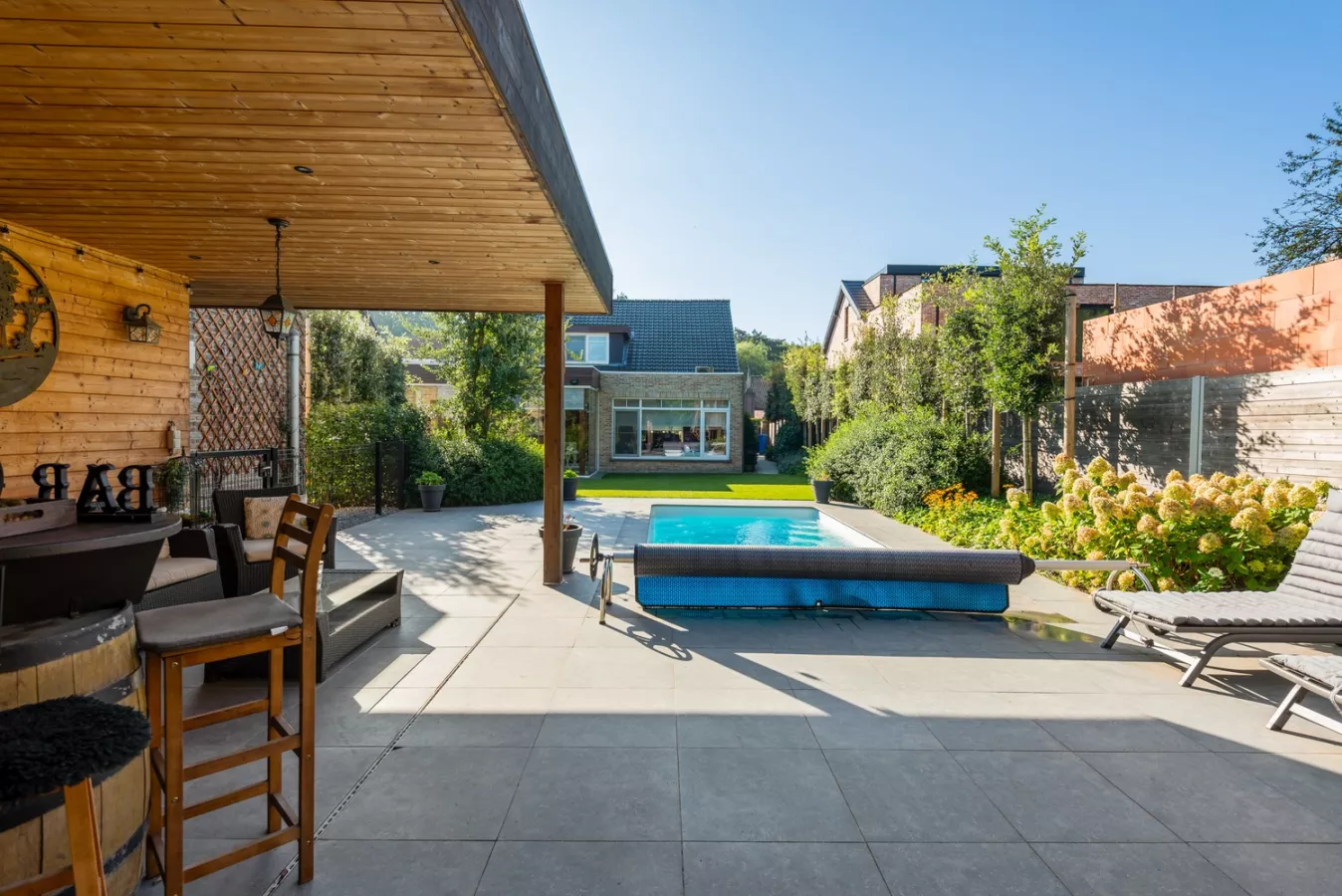 Als kers op de taart beschikt de woning over een fantastische tuin met terras, verwarmd zwembad en prachtig poolhouse waar u optimaal kan genieten tijdens mooi weer met vrienden of familie! Het zwembad is uitgerust met al het nodige materiaal zoals een nieuwe pompinstallatie alsook een warmtepomp.