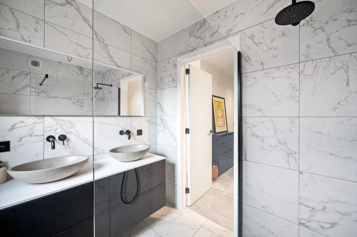 Ook is het appartement uitgerust met een comfortabele badkamer, voorzien van een inloopdouche en dubbele lavabo.