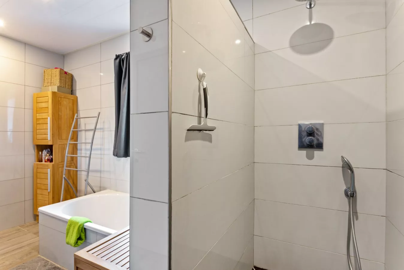 De badkamer is ruim en comfortabel, voorzien van een bad, inloopdouche en een dubbel lavabomeubel. Tot slot vindt u op deze verdieping nog een apart toilet.