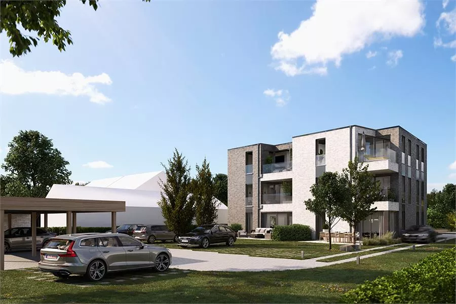 Hedendaags en tijdloos nieuwbouwproject bestaande uit 9 BEN-appartementen, enkele carports alsook staanplaatsen, fietsenstalling en 9 kelderbergingen. Het project kijkt achteraan uit op agrarisch gebied.
