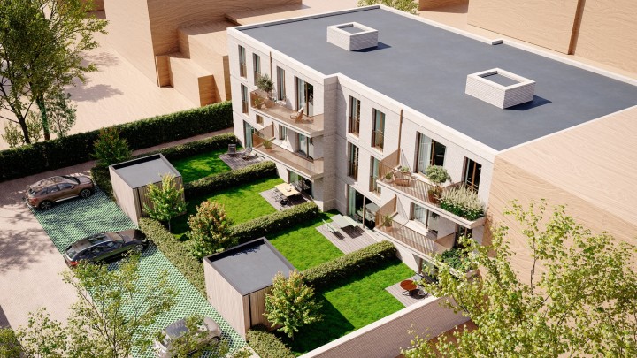 Het project omvat voornamelijk 2 slaapkamer appartementen, welke allen beschikken over een ruim terras en/of tuin.