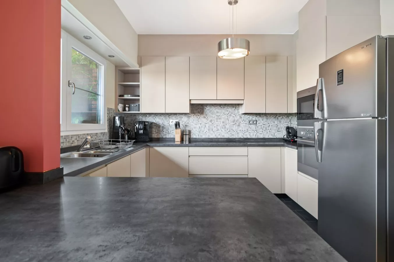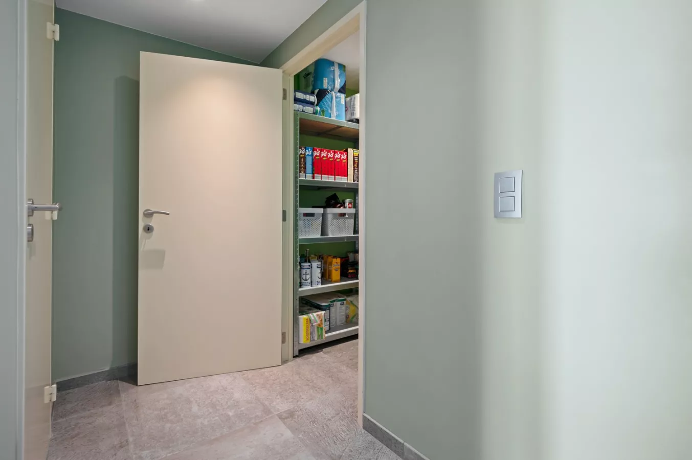 Tenslotte heeft u toegang tot de ruime rustige tuin met een regenwaterput van 2.000l (toiletten + buitenkraan). Bijkomend zijn 28 zonnepanelen (PV) op het dak geïnstalleerd.