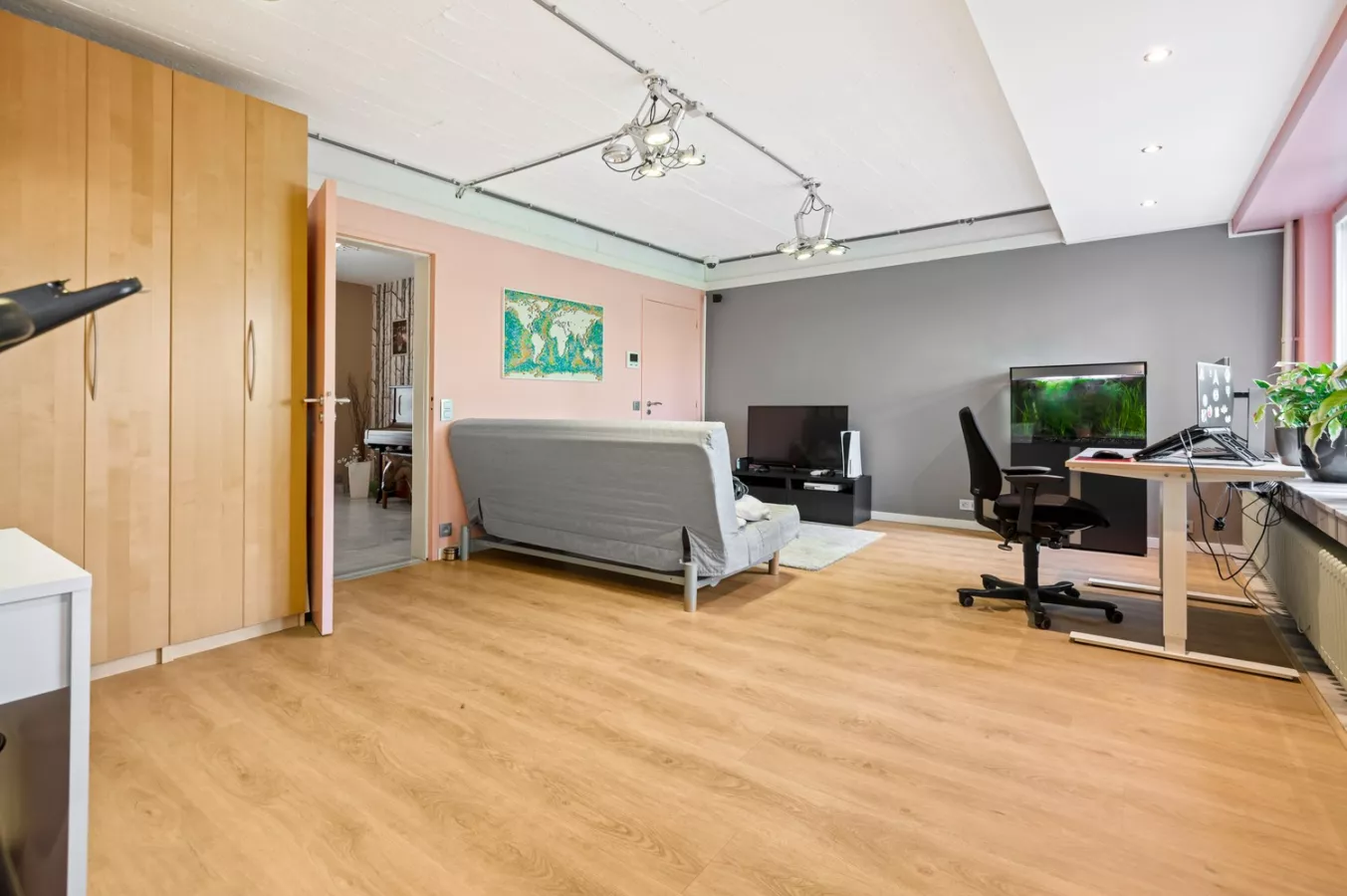 u betreedt de woning via de lichtrijke inkomhal dewelke u brengt naar een multifunctionele kamer die kan dienen als bureauruimte of een extra slaapkamer. Via de hal heeft u toegang tot een apart toilet alsook een berging. Verder is een praktijkruimte (30m²) aanwezig, die ook kan dienen als een extra slaapkamer.