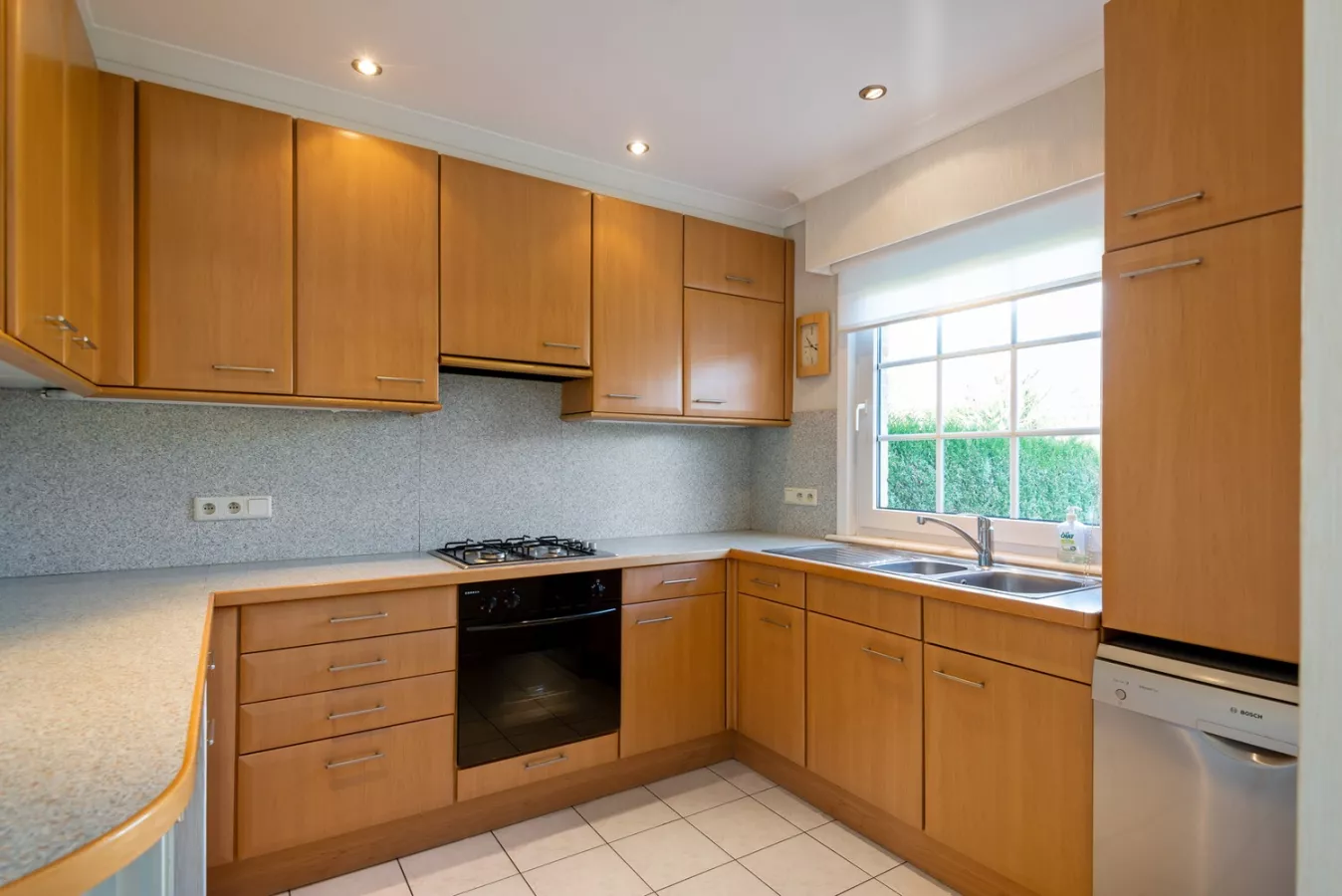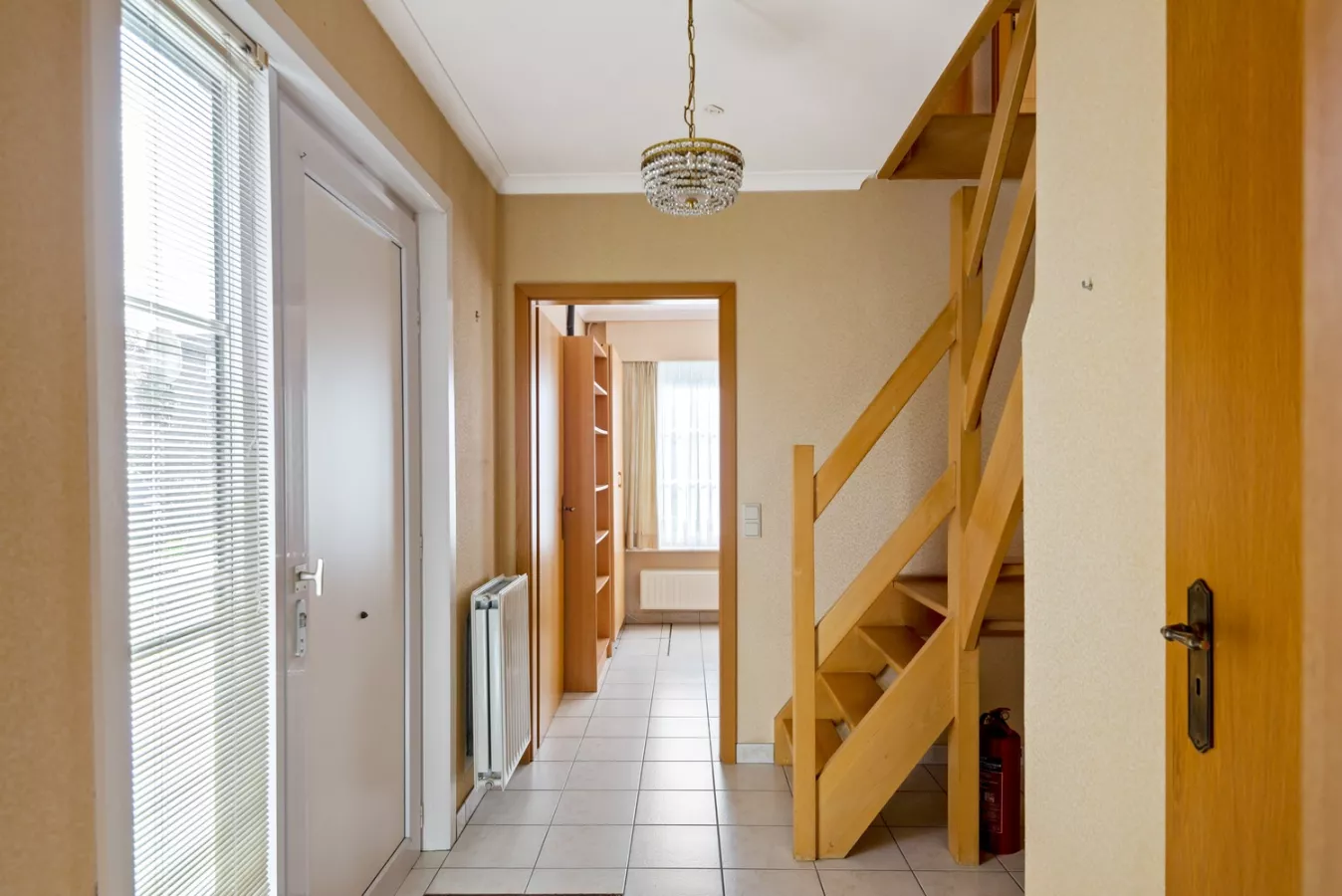 We betreden de woning via de inkomhal met apart toilet. Deze brengt ons naar de riante leef- en eetruimte met zicht op de tuin dewelke bereikbaar is via het groot schuifraam. De leefruimte loopt naadloos door naar de geïnstalleerde keuken die tevens van een mooi uitzicht naar buiten geniet. De oostelijk georiënteerde tuin is voorzien van een terras en ideaal om te vertoeven tijdens mooi weer!