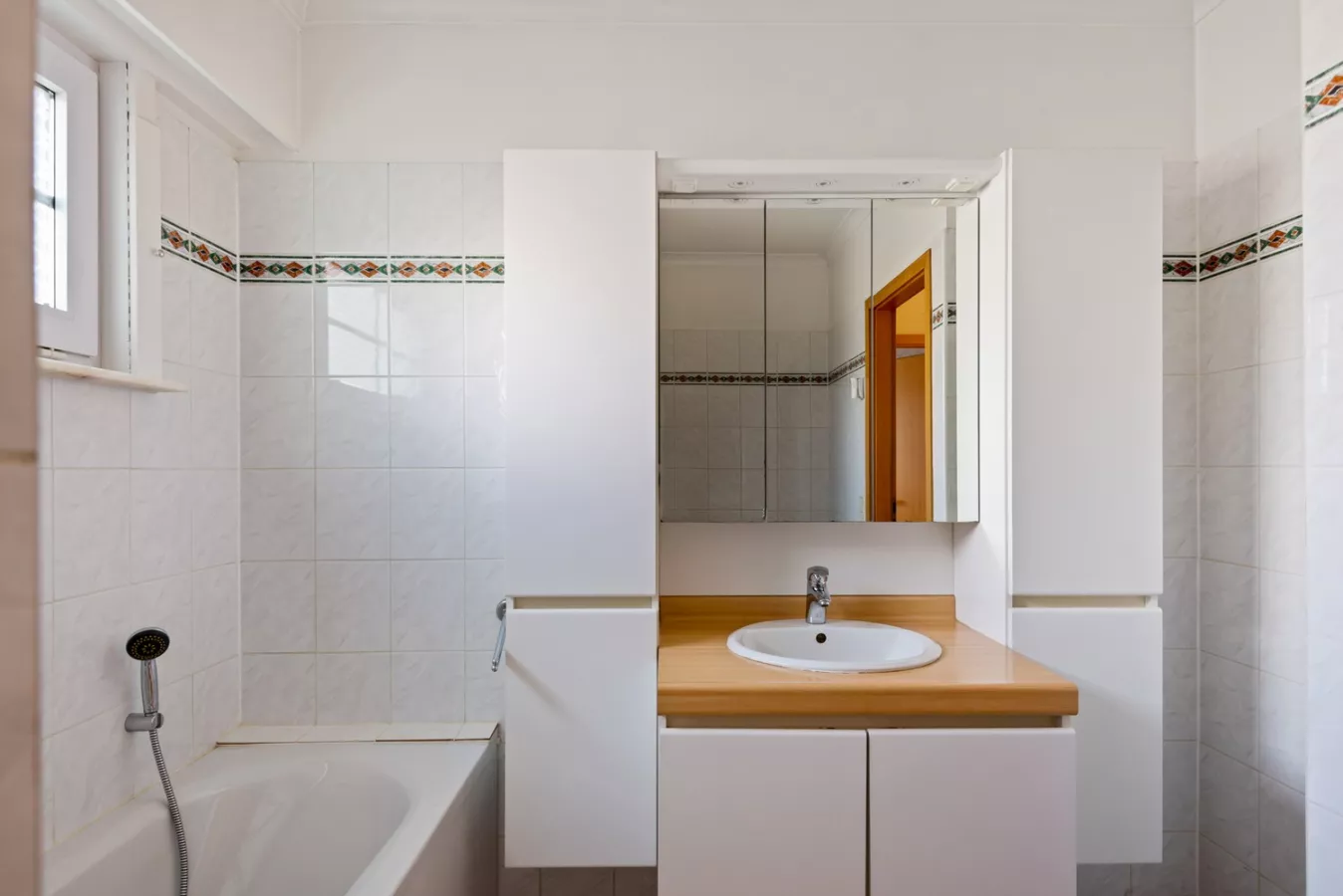 De eerste verdieping bestaat uit twee ruime slaapkamers (14m² / 11m²), een bergruimte en de badkamer die is uitgerust met een enkele lavabo, een toilet, een douche en een ligbad met douchefunctie.
