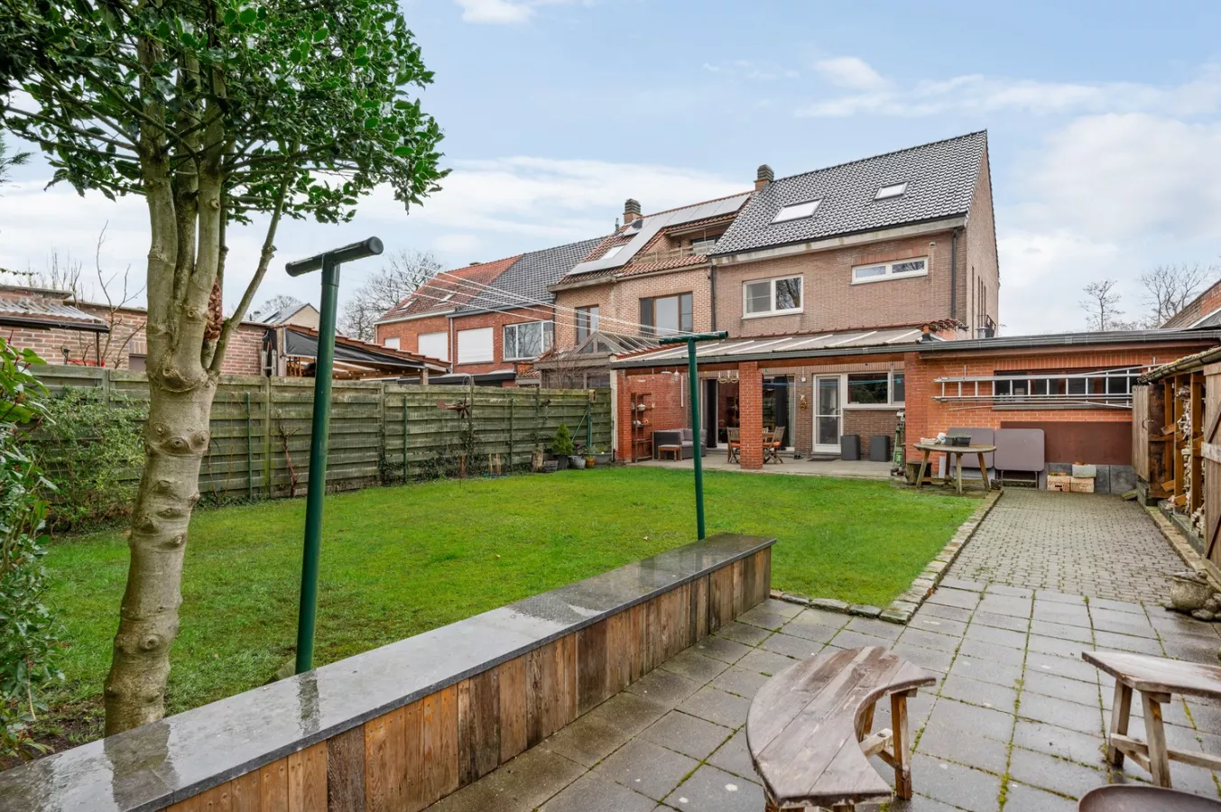 Tot slot heeft deze halfopen bebouwing een garage met eigen oprit. Via een servitudeweg is de garage achteraan ook bereikbaar voor de fietsen.