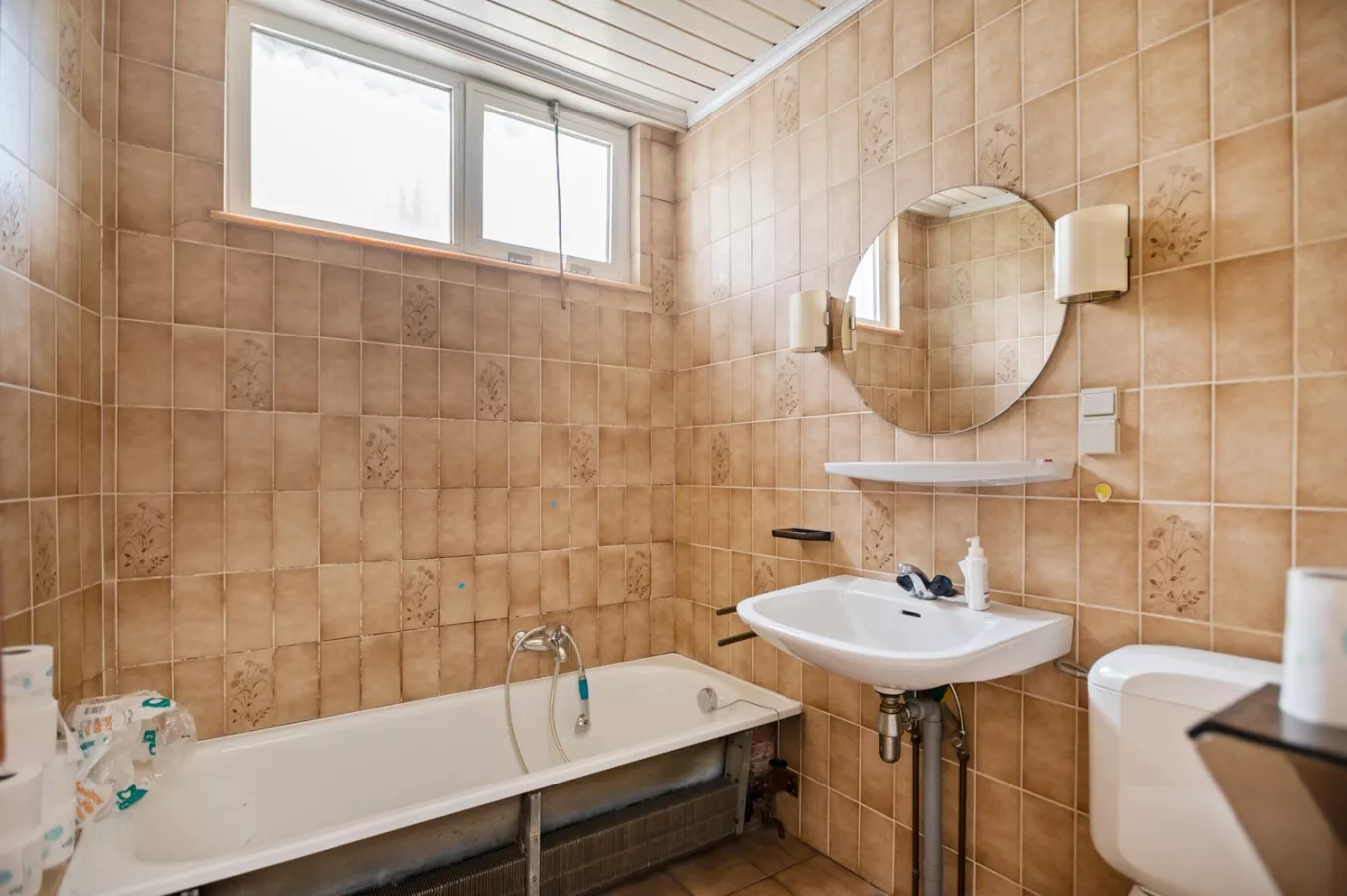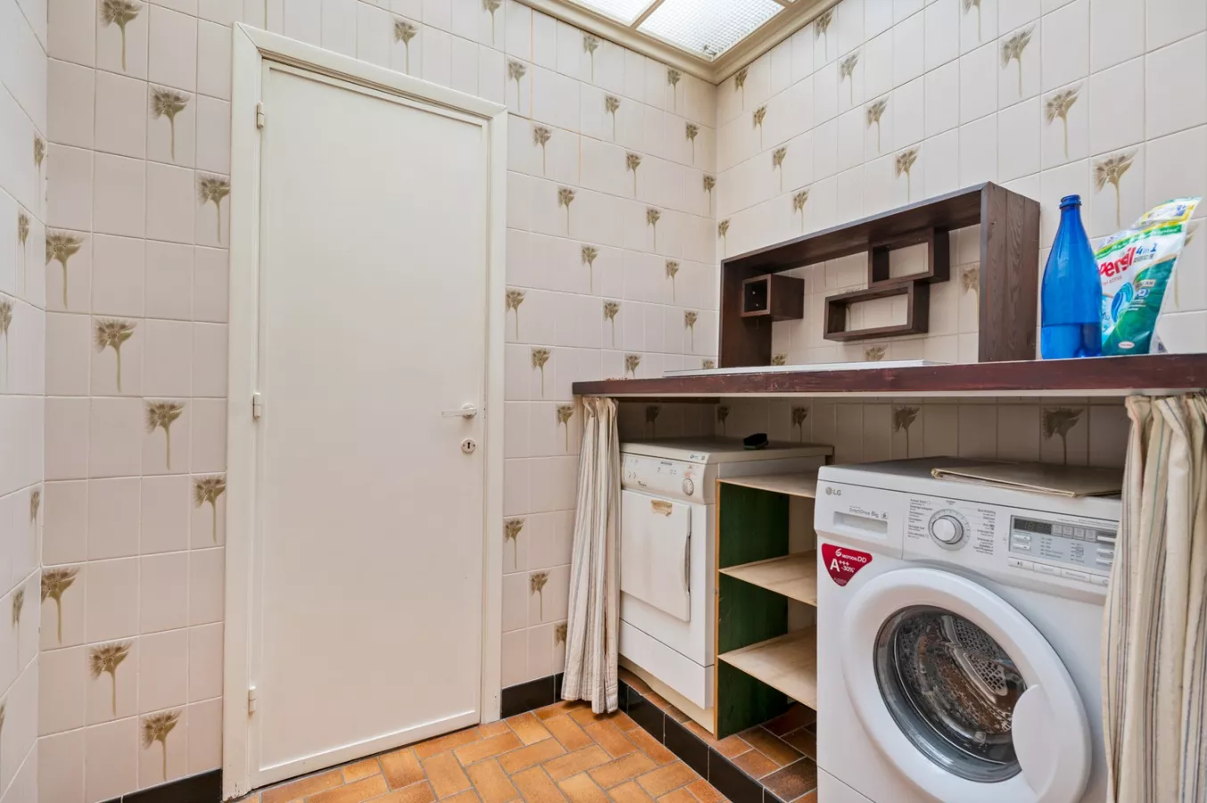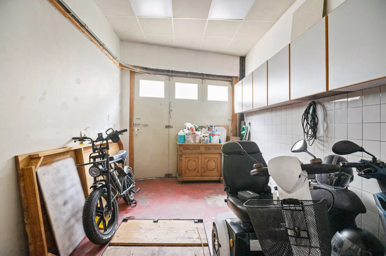 Verder beschikt dit pand over een inpandige garage, geschikt voor een wagen of fietsen, én een ruime kelder met dubbele toegang.