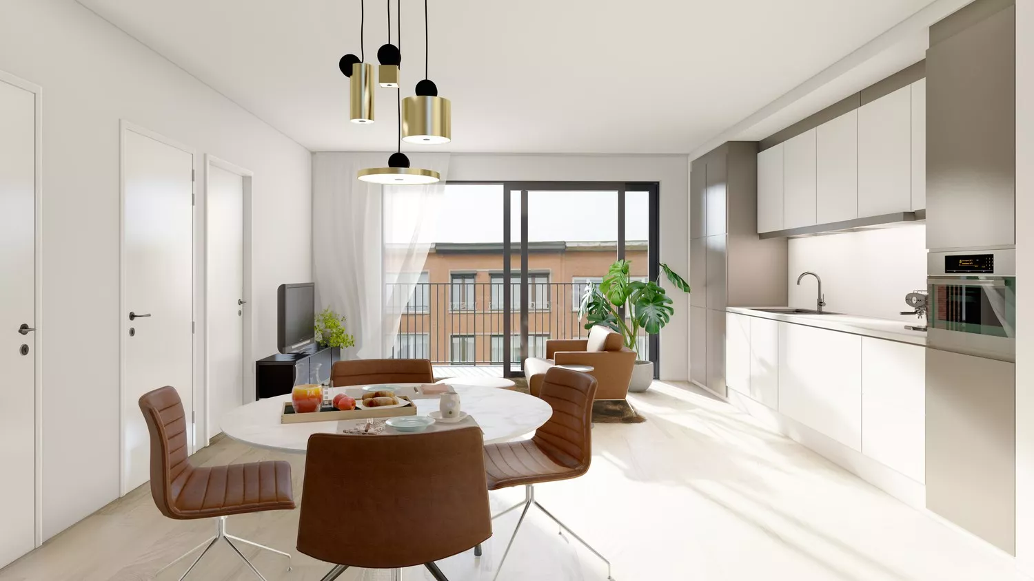 Vanuit de leefruimte heeft u via de schuifraam toegang tot uw privatieve terras aan de voorzijde van het gebouw.