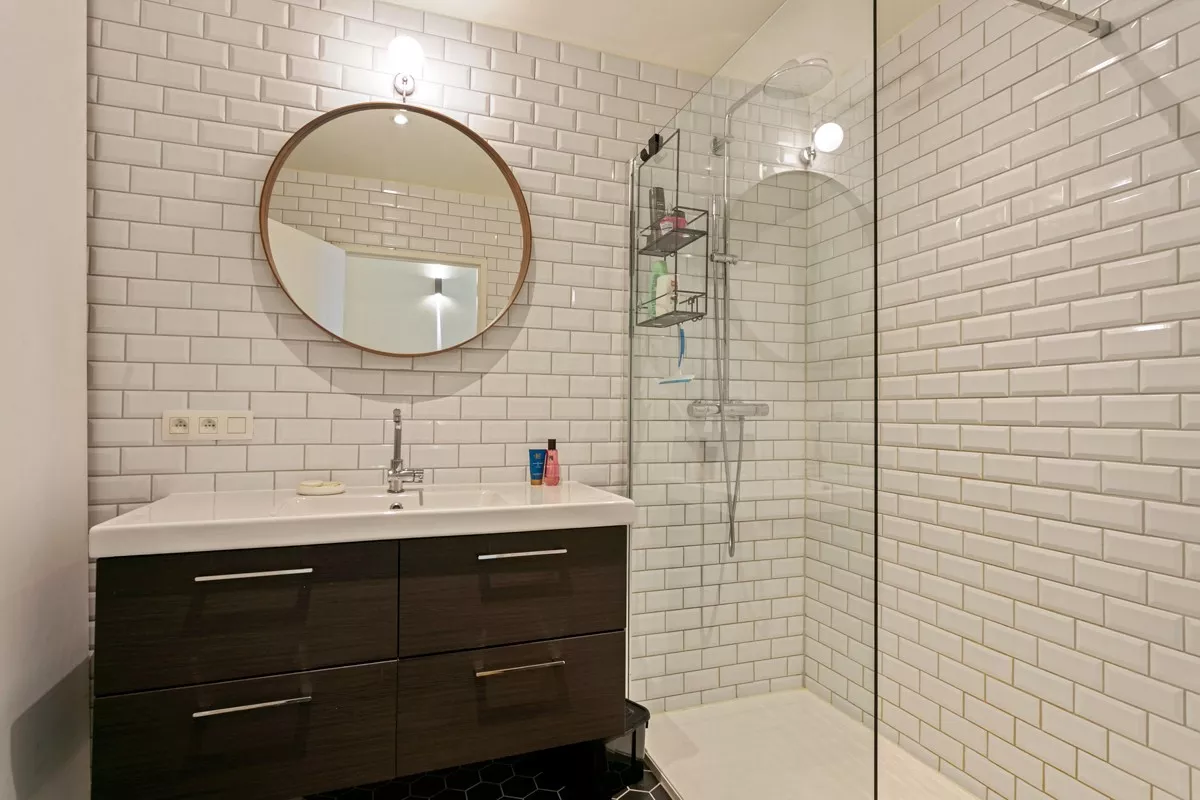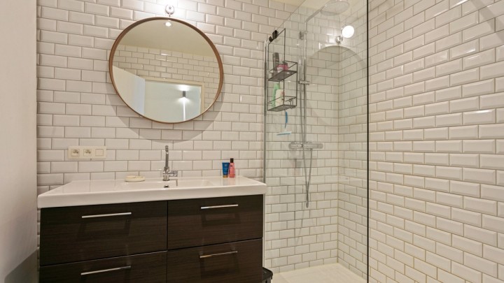 Verder beschikt het appartement nog over een volledig betegelde badkamer met een inloopdouche en twee slaapkamers (17 m² / 10 m²).
