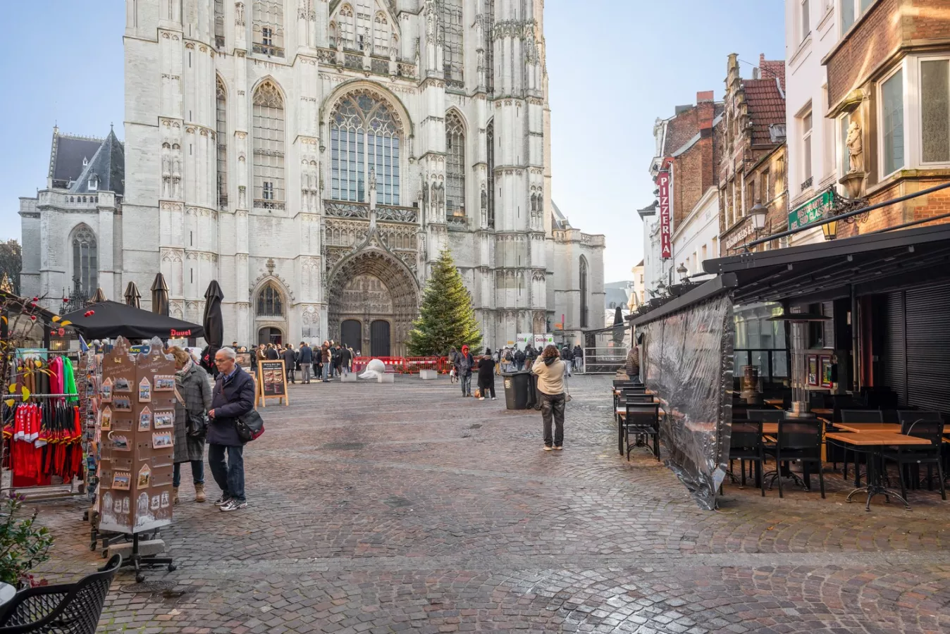 In de schaduw van de Kathedraal, ter hoogte van de Melkmarkt en de heraangelegde Korte Nieuwstraat vinden we deze prachtige handelsruimte in een eigendom dat te boek staat als 'de Gouden Duyve' en waarvan de authentieke kern dateert uit de 17de eeuw.