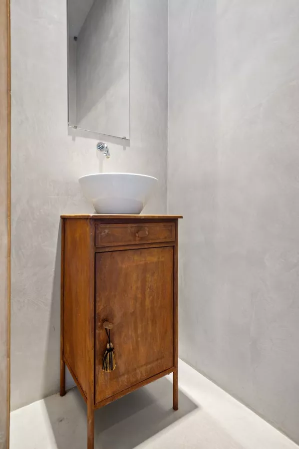 Het appartement beschikt over een ruime slaapkamer met ingemaakte kasten. De badkamer is uitgerust met een douche afgewerkt in Mortex, een badkamermeubel en een apart toilet.